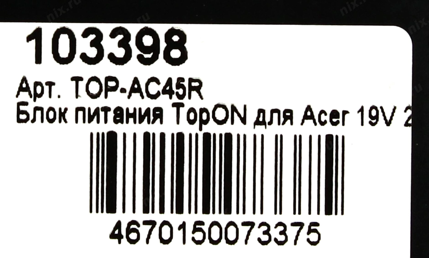 TopON TOP-AC45R <103398> Блок питания для Acer (19V, 2.37A, 45W)
