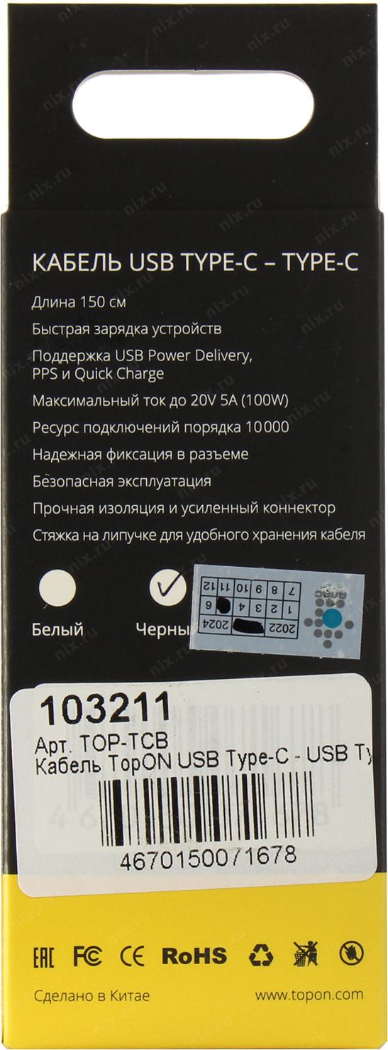 TopON TOP-TCB < 103211> Кабель USB-C--> USB-C 1.5м