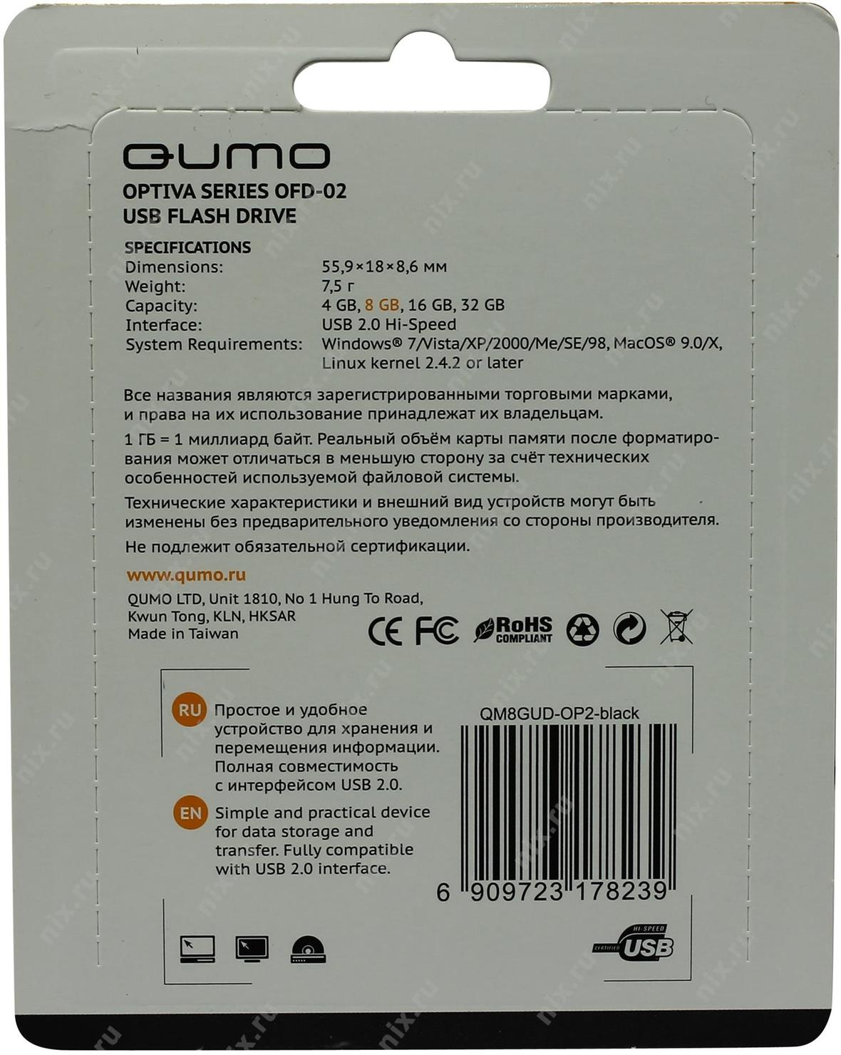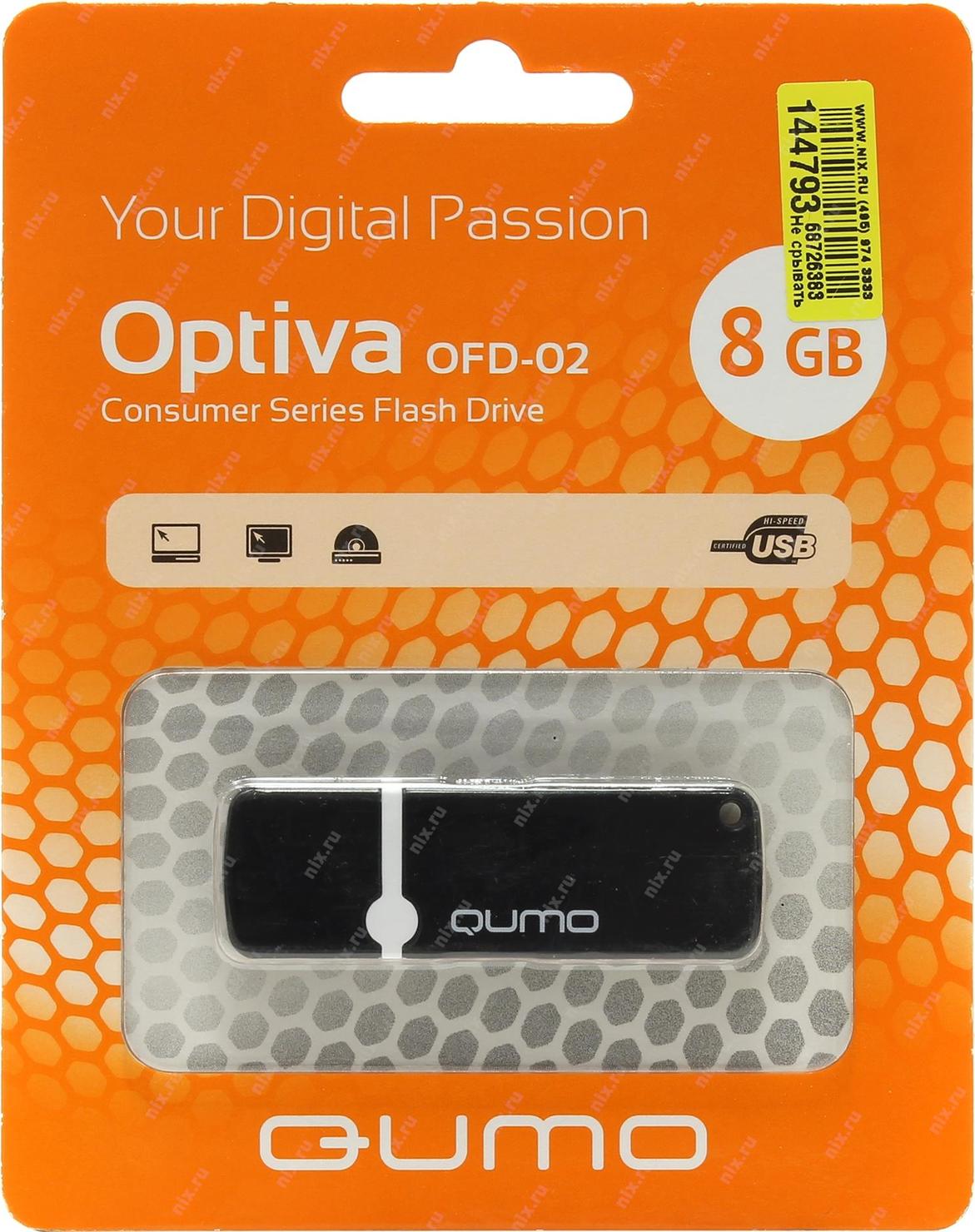 Носитель информации USB 2.0 QUMO 8GB Optiva 02 Black [QM8GUD-OP2-black] | НИКС Екатеринбург