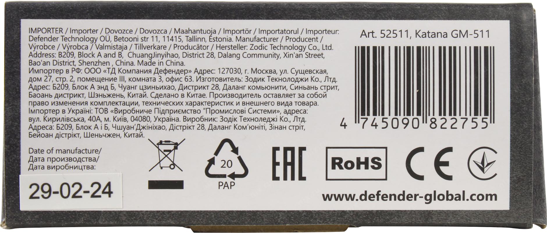 Мышь беспроводная KATANA GM-511 черная 52511 DEFENDER