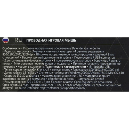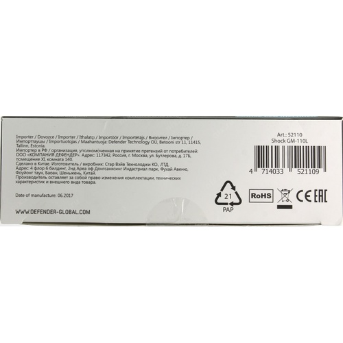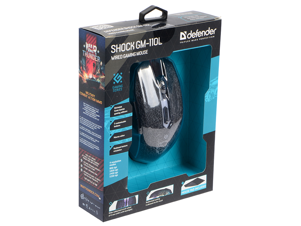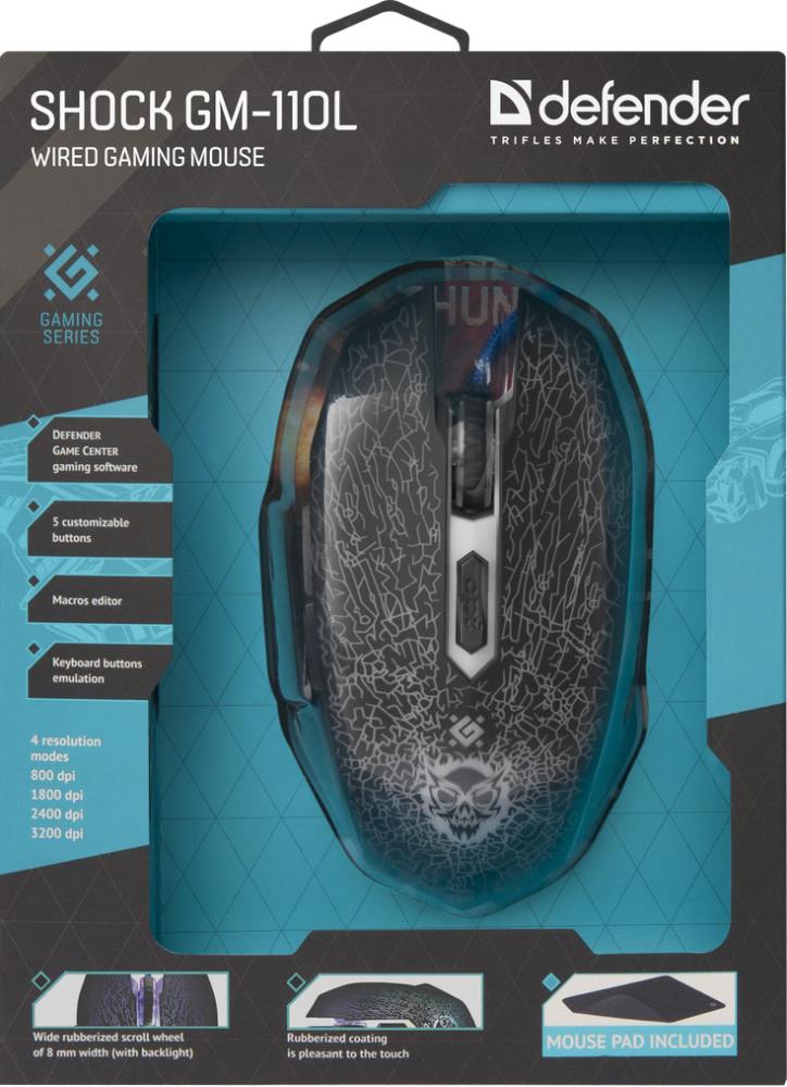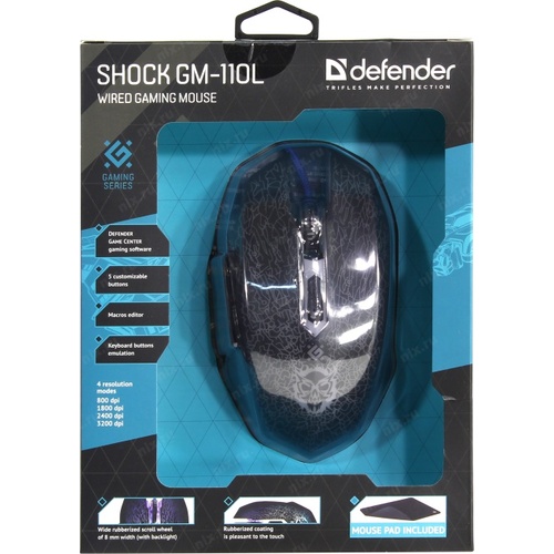 Мышь проводная SHOCK GM-110L черная 52110 DEFENDER