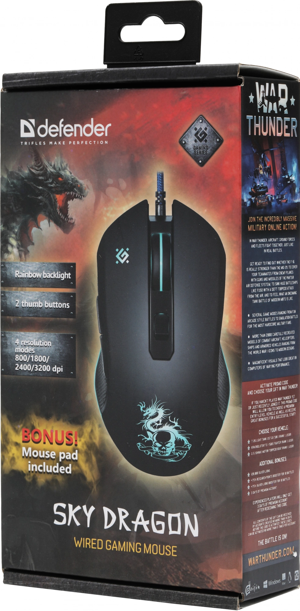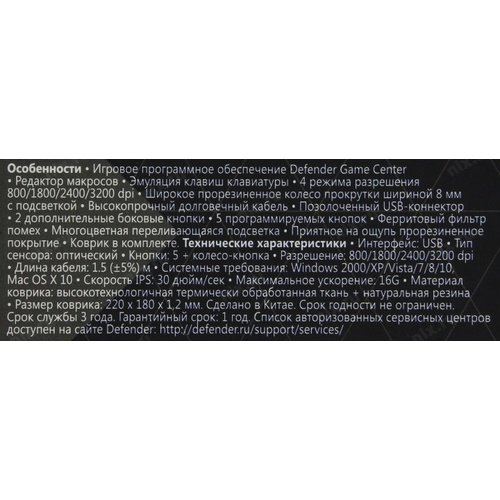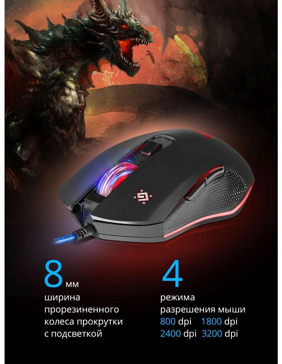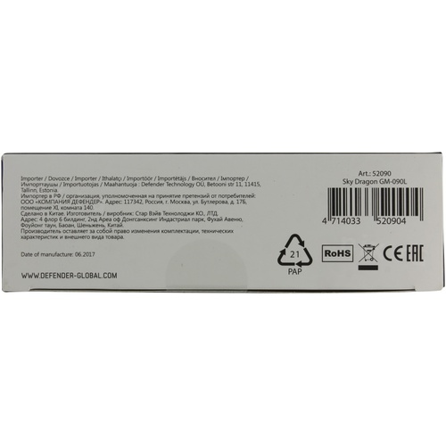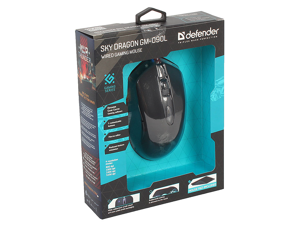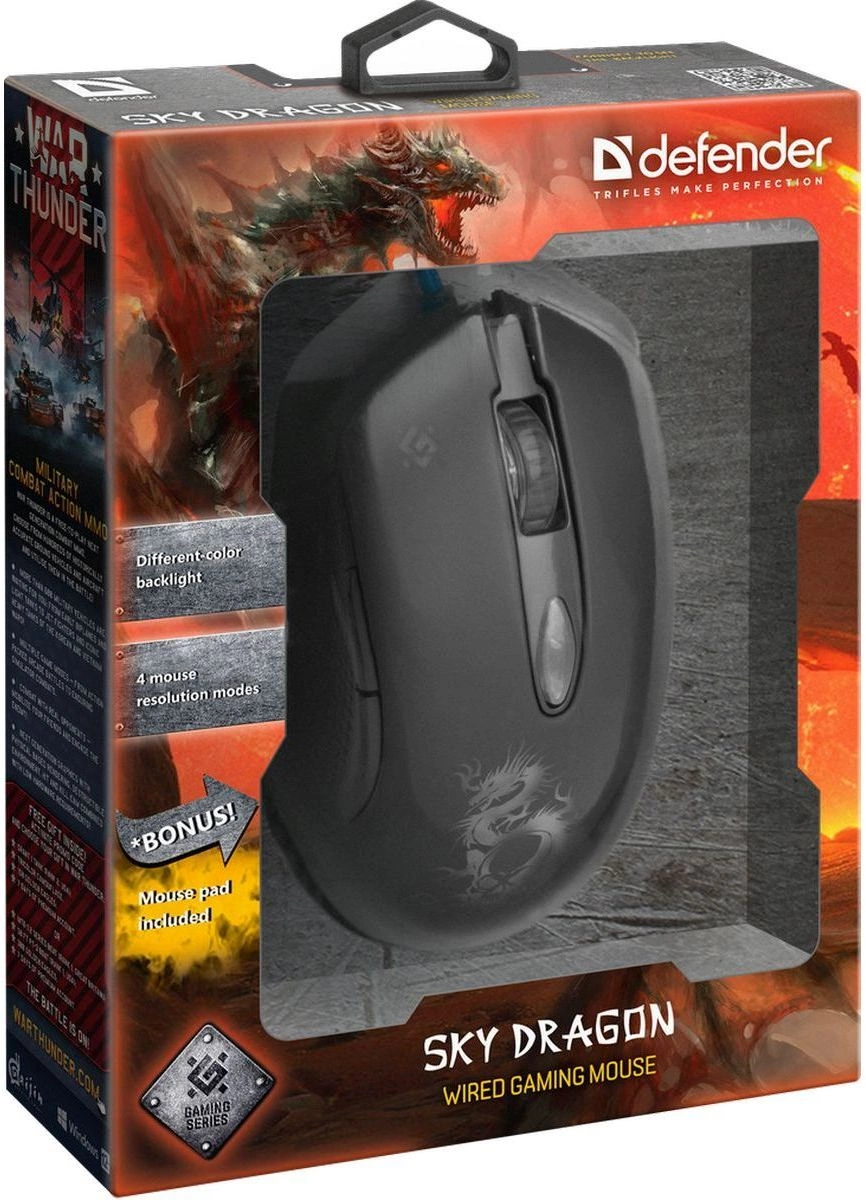 Мышь проводная SKY DRAGON GM-090L черная 52090 DEFENDER