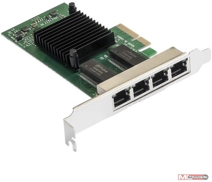 Добавляет 4 порта Ethernet 10/100/1000 Мбит/с к настольному компьютеру через слот PCI-e. Предназначена для организации локальной сети или сети Интернет