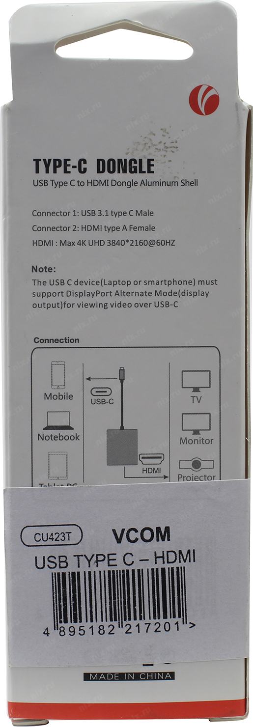 Кабели VCOM CU423T Адаптер USB 3.1 Type-Cm -->HDMI A(f) 4K@60Hz, Aluminum Shell, VCOM <CU423T> [04895182217201] | НИКС Екатеринбург