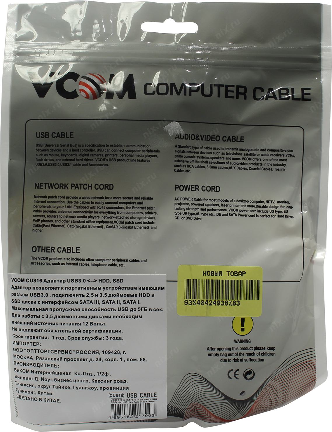 Аксессуар VCOM <CU816> Кабель-адаптер USB3.0 -> SATA 2.5"/3.5"