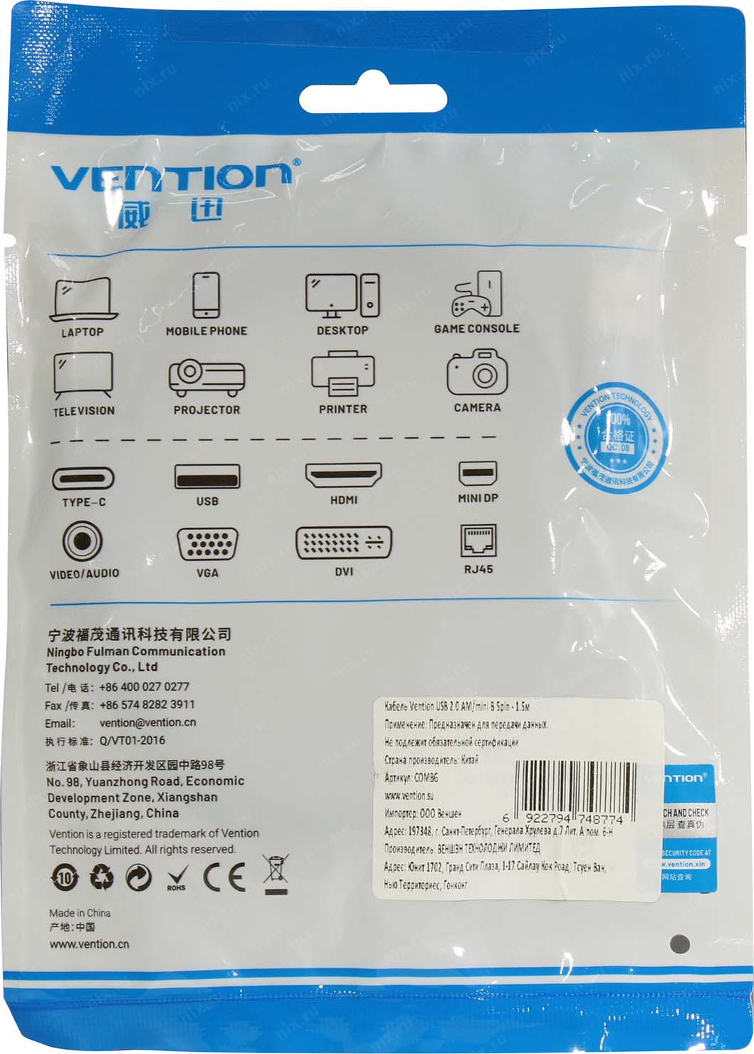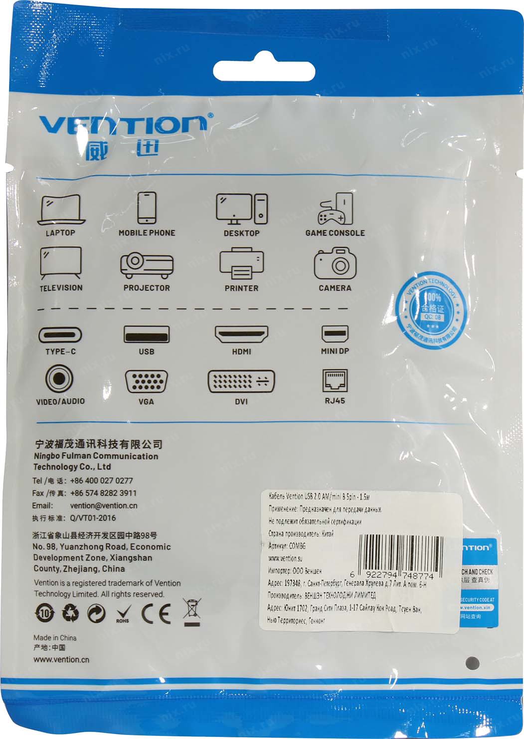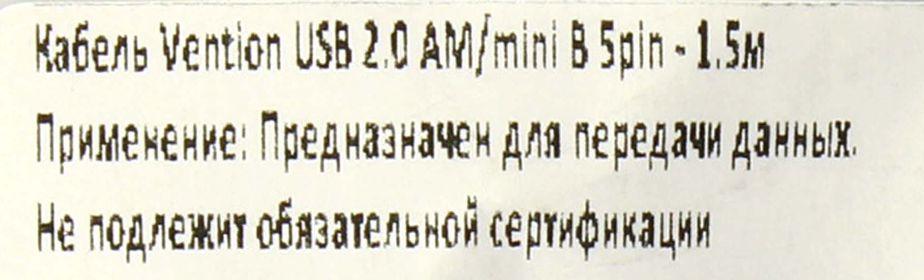 Vention <COMBG> Кабель USB 2.0 AM-->mini-B 1.5м
