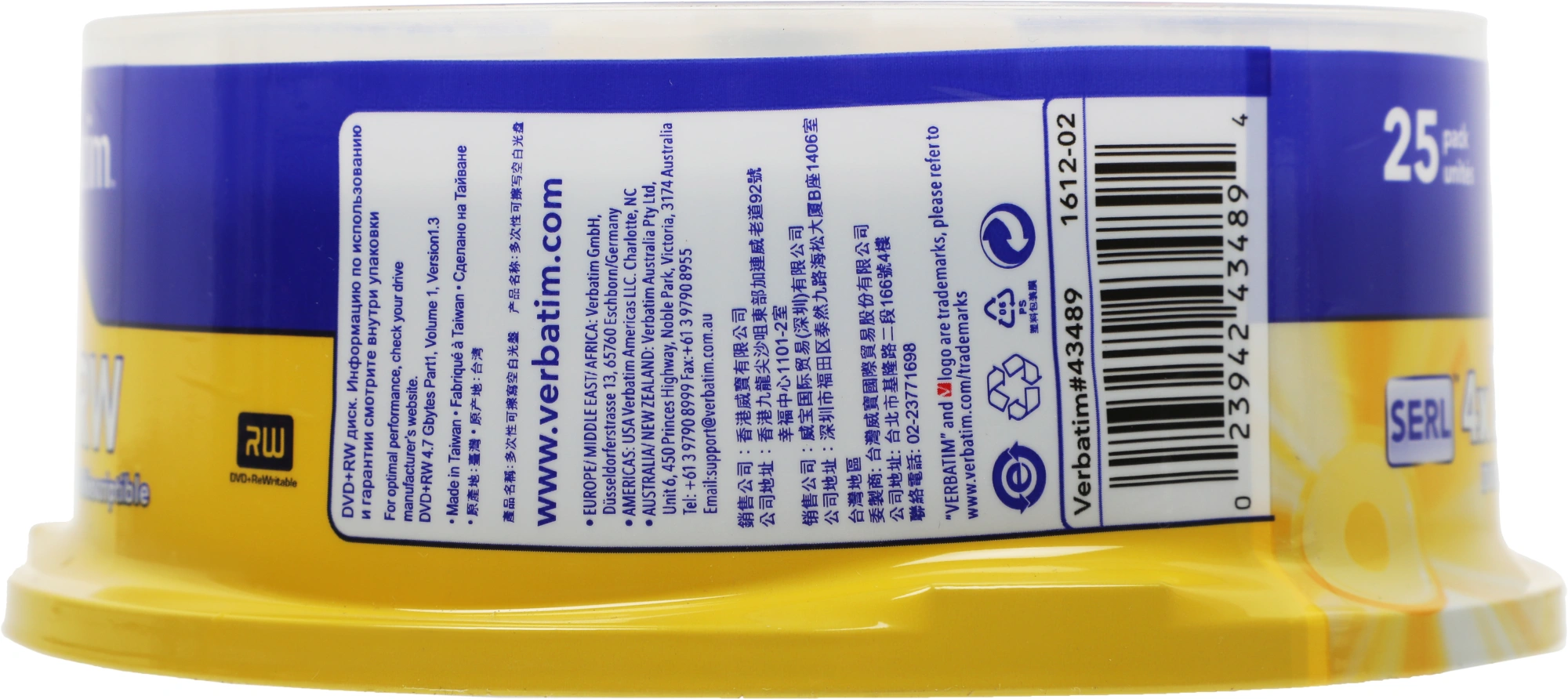 Диск Verbatim Диски DVD+RW , 4.7Gb 4-х , 25шт, Cake Box (43489)