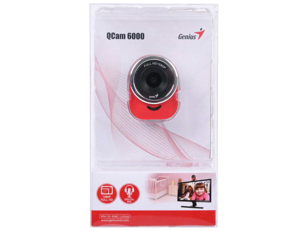 WеЬ-камера Genius QCam 6000 Red (1080p Full HD, вращается на 360°, универсальное крепление, микрофон, USB) [32200002408]