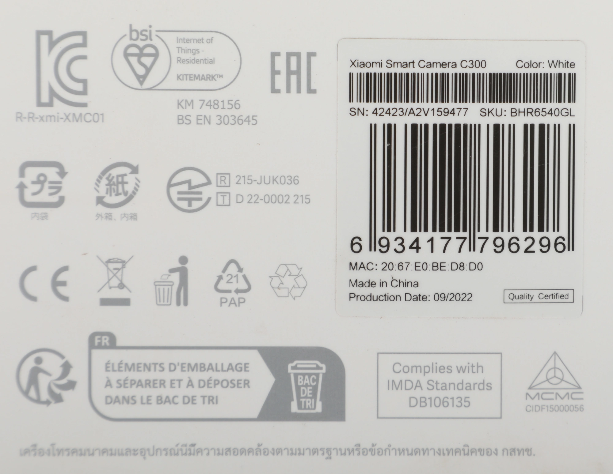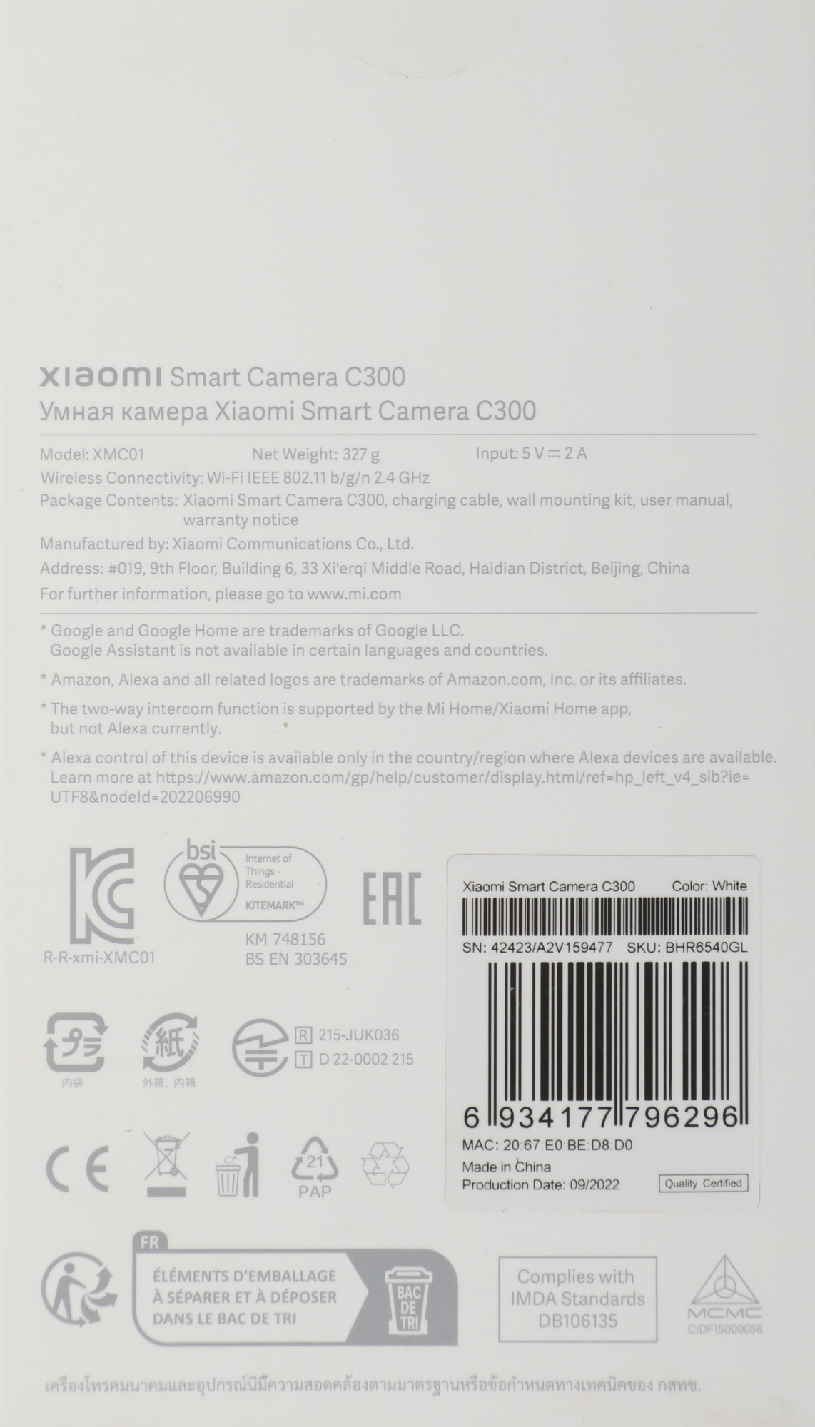 Камера видеонаблюдения Xiaomi IP-камера Smart Camera C300 BHR6540GL (16) (796296)