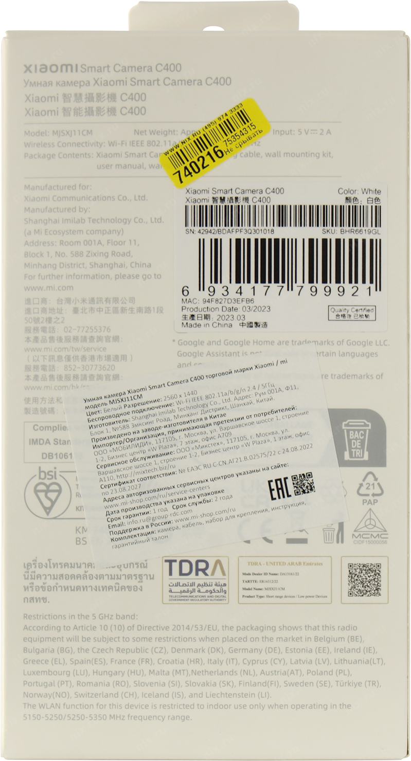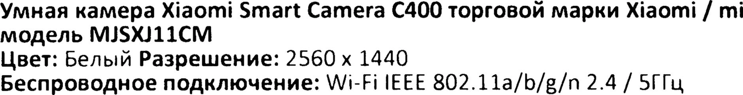 Видеокамера Xiaomi Smart Camera C400 (BHR6619GL)