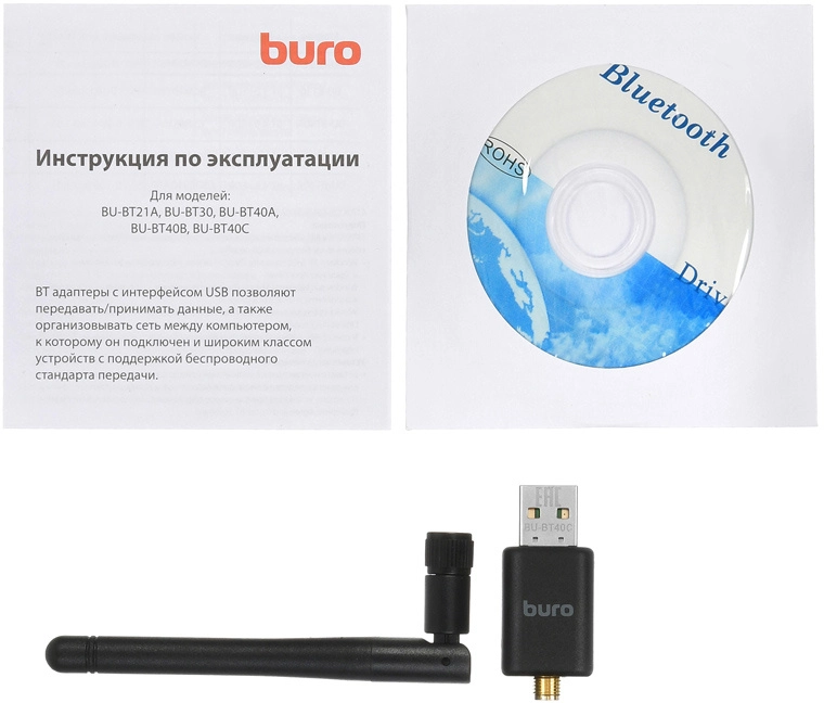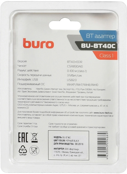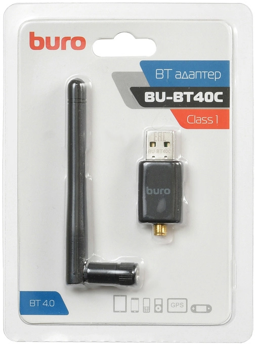 Адаптер USB Buro BU-BT40C BT4.0+EDR class 1 100м черный BT40С