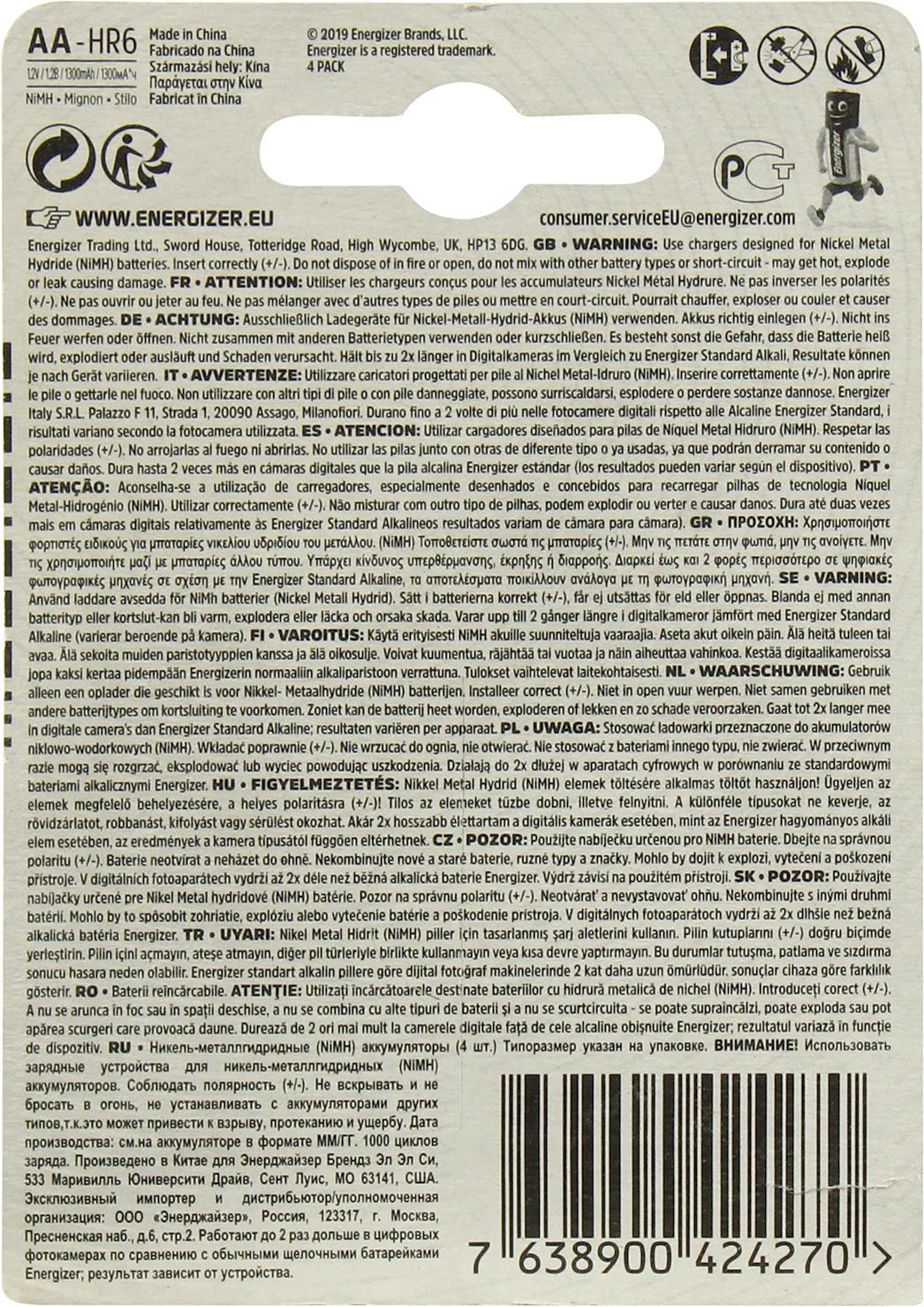 Аккумулятор Energizer Universal <424270> (1.2V, 1300mAh) NiMH, Size "AA" <уп. 4 шт>