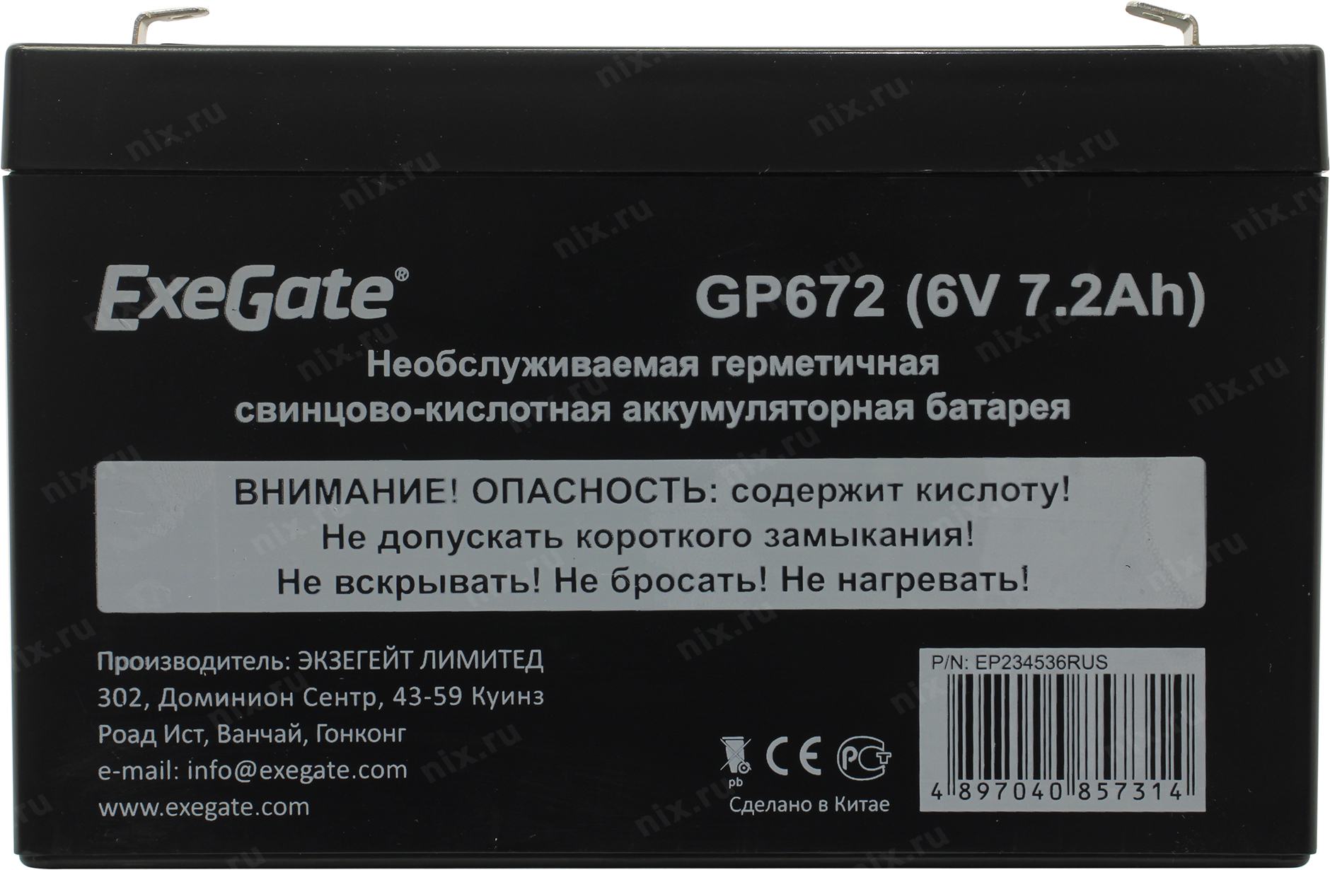 Аккумулятор Exegate EXG672/ GP672 (6V, 7.2Ah) для UPS < EP234536RUS>