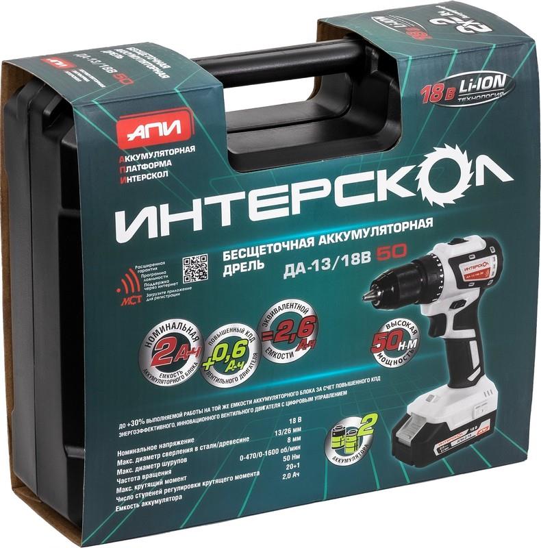Аккумуляторная бесщеточная дрель-шуруповерт ДАУ-13/ 18В 50 ИНТЕРСКОЛ 802.2.2.70