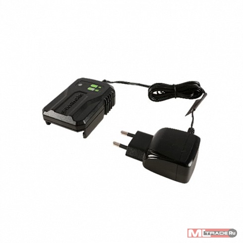 Быстрое зарядное устройство Greenworks G24C-24V-2Ач оснащено встроенной системой охлаждения аккумуляторной батареи, а также световым индикатором уровня заряда батареи.