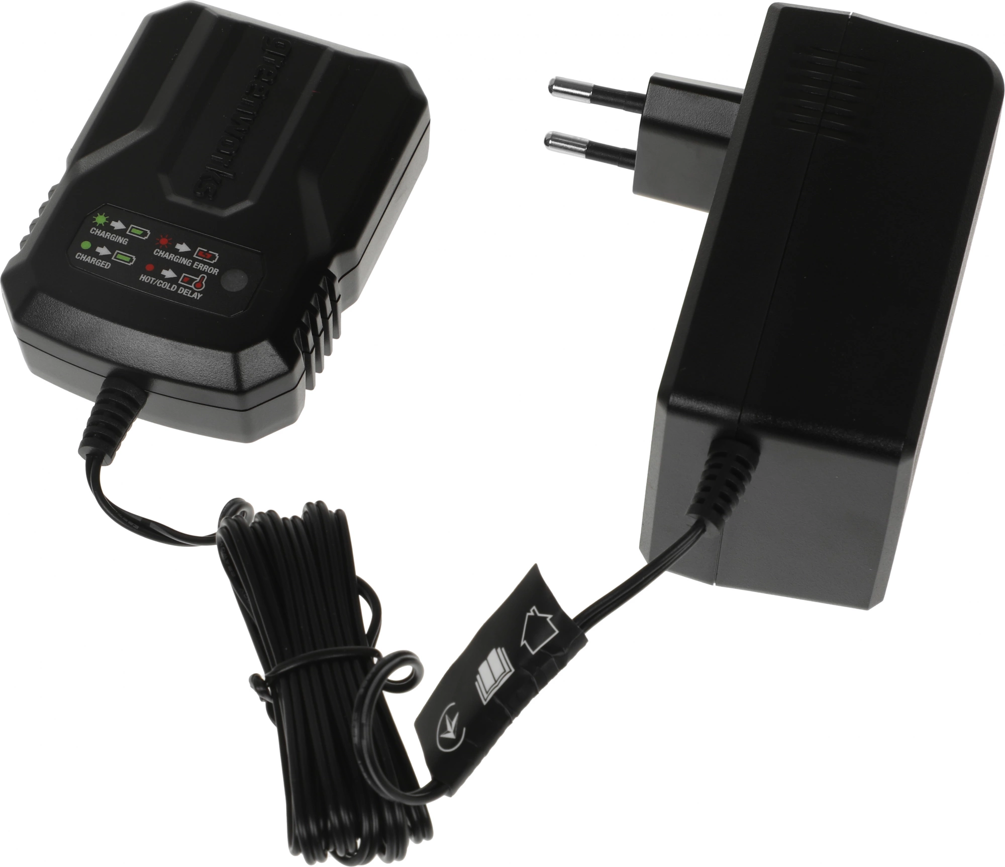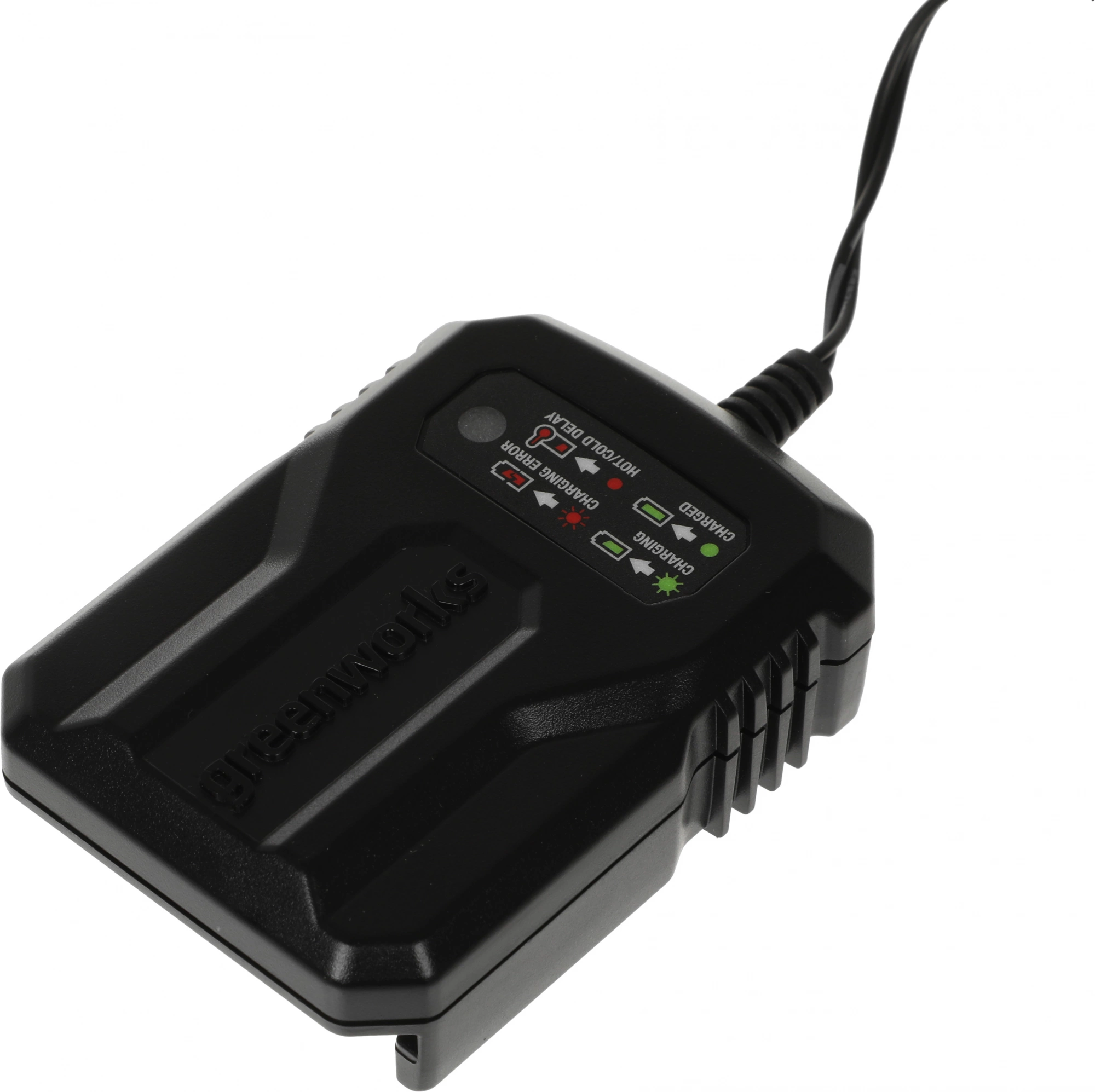 заряжает 2 Ач и 4 Ач аккумуляторы серии Greenworks 40V.