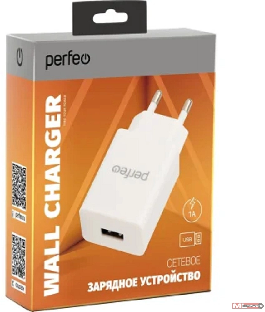 Аксессуар PERFEO Сетевое зарядное устройство с разъемом USB, 1А, белый (I4656)