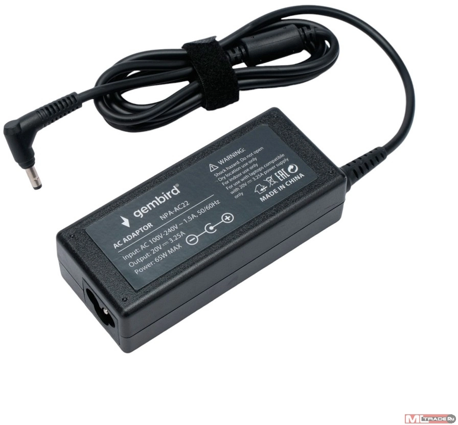 Аксессуар к ноутбуку Gembird Блок питания для ноутбуков Lenovo 20В/3,25А, 65Вт, 1 штекер 4.0х1,7мм (NPA-AC22)