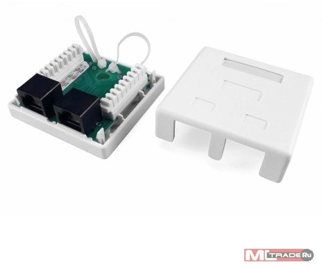 Предназначена для эксплуатации внутри помещений, используется для подключения терминальных устройств (сетевых карт компьютеров) при помощи патч-кордов к локальным компьютерным сетям. Розетка состоит из пластмассовой лицевой панели и модулей подключения.
