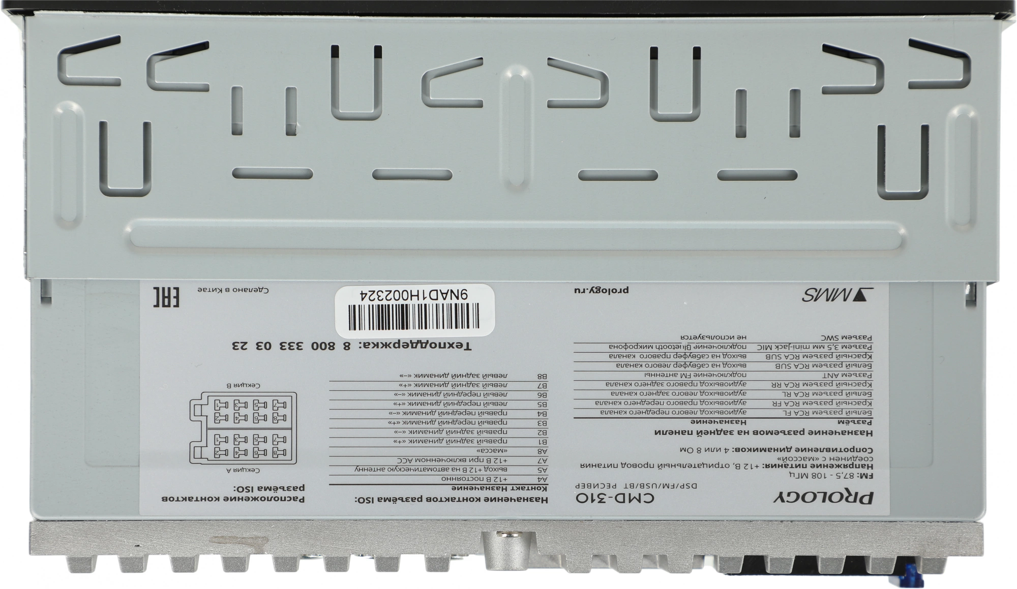 4-канальный аудиовыход RCA Аудиовход Mini-Jack 3, 5 мм на передней панели 2 аудиовыхода RCA на сабвуфер Вход Mini-Jack 3, 5мм для доп.внешнего микрофона Bluetooth