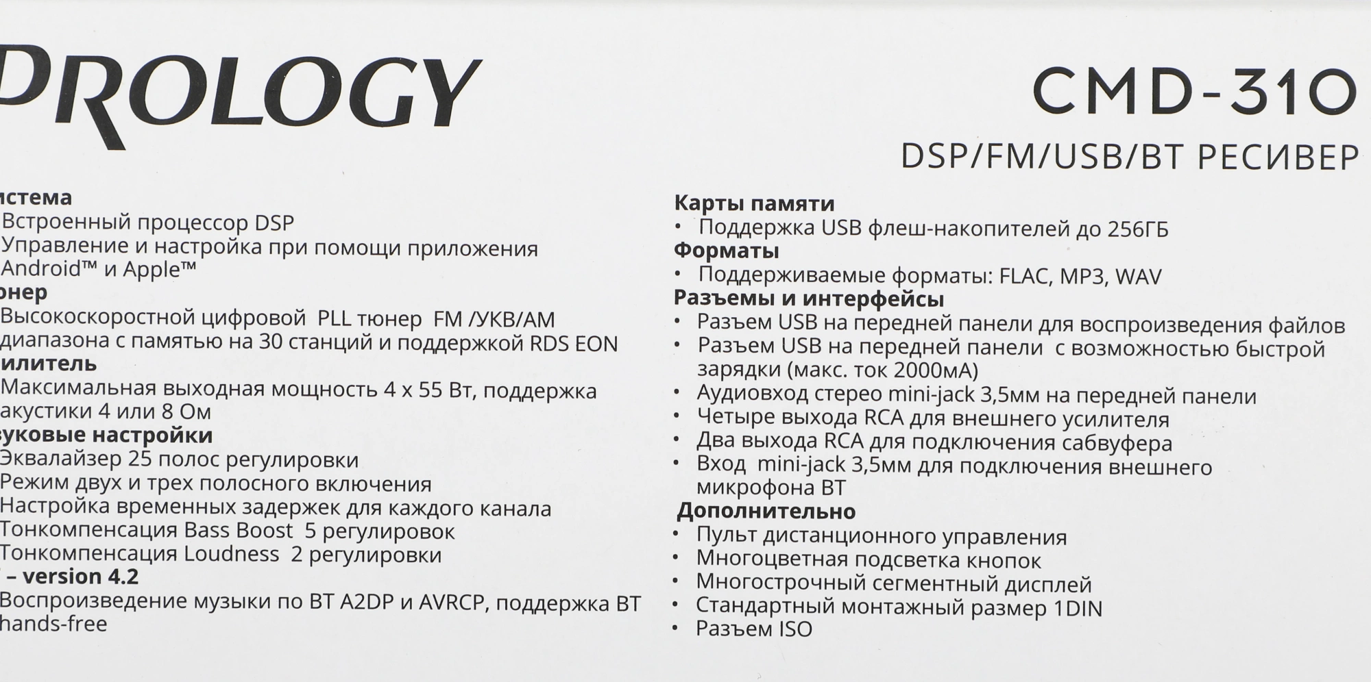 Автомагнитола Prology CMD-310 1DIN 4x55Вт AUX DSP 3 RDS (PRCMD310)