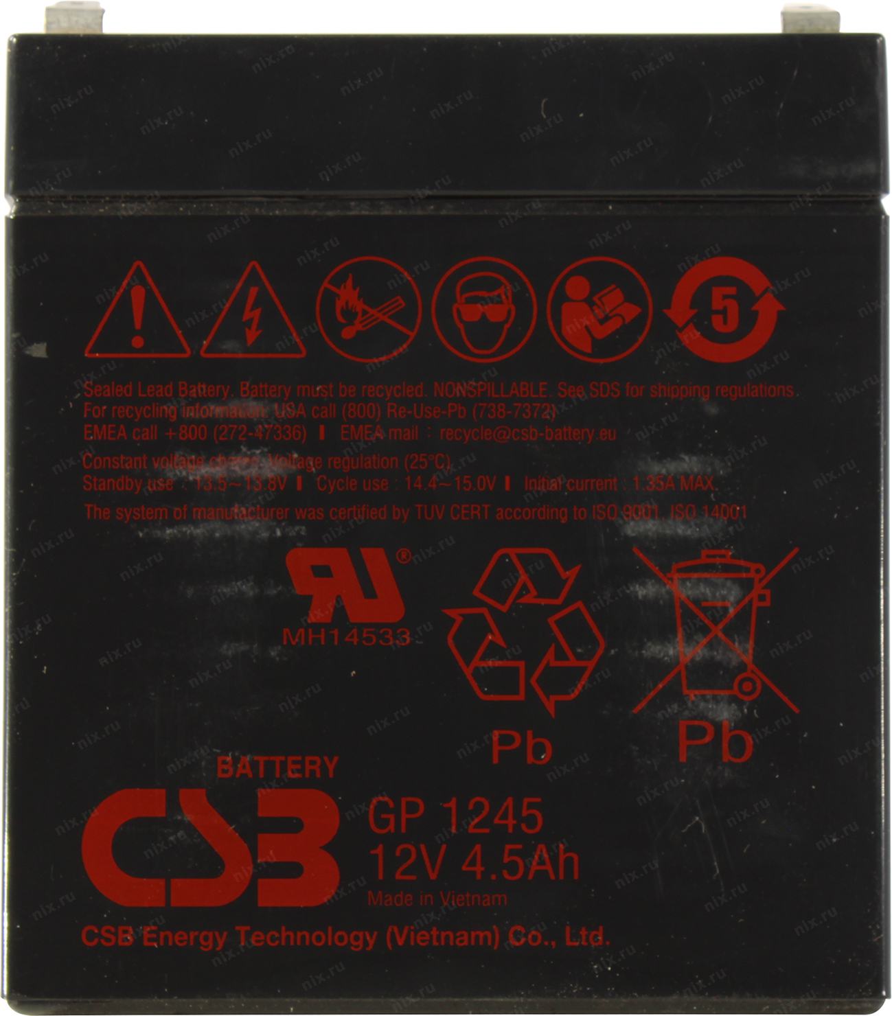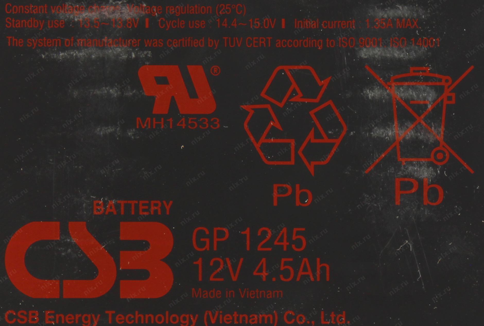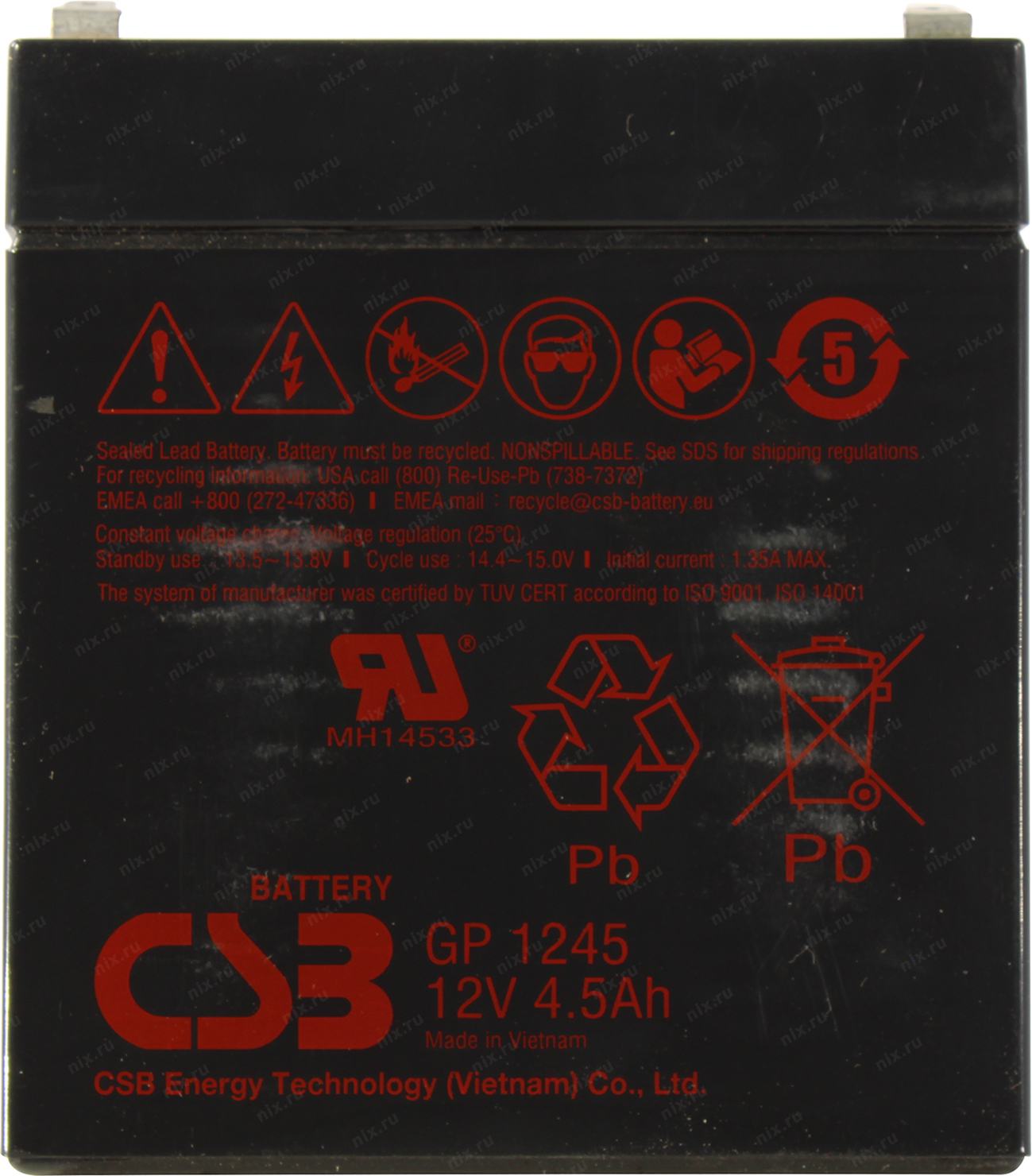 Батареи CSB Батарея GP1245 (12V 4,5Ah/16W) [GP1245F1(12V16W)]