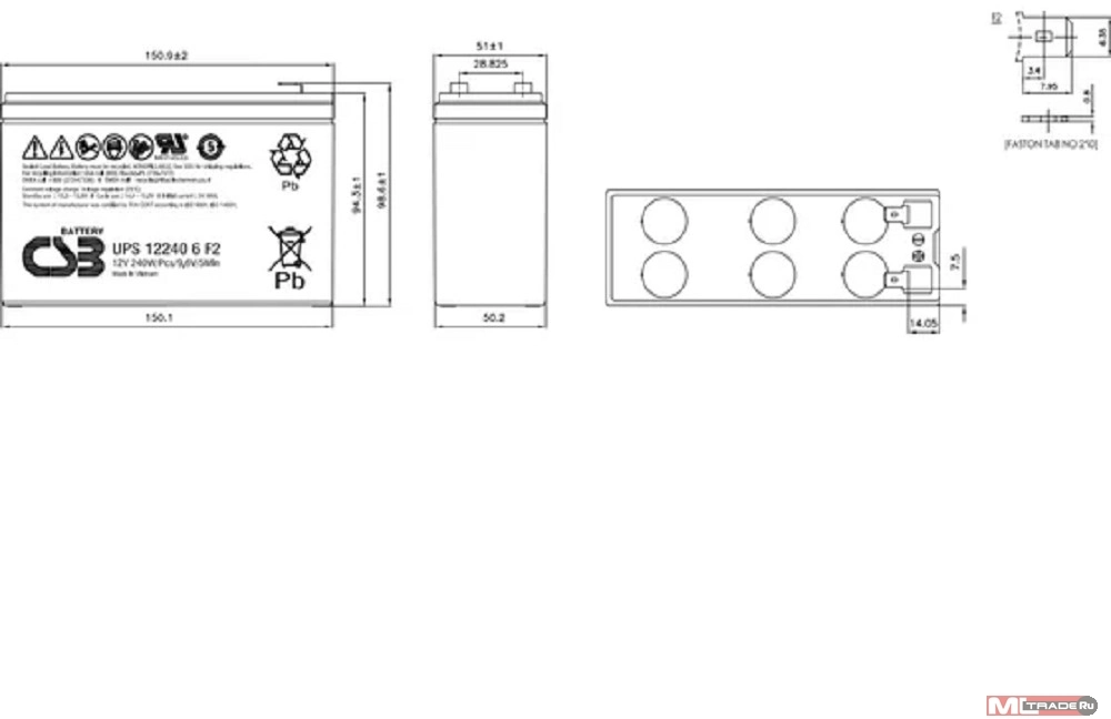 151 х 98 х 51 мм (12В, 6 Ач)