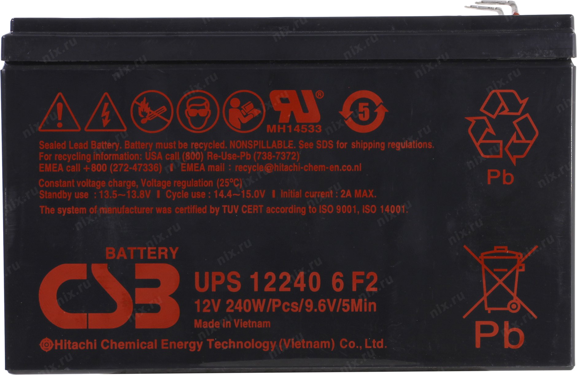 При циклическом использовании: 14.4В~15.0В при температуре 25°C,;;При использовании в режиме ожидания (буферном): 13.5В~13.8В при температуре 25°C