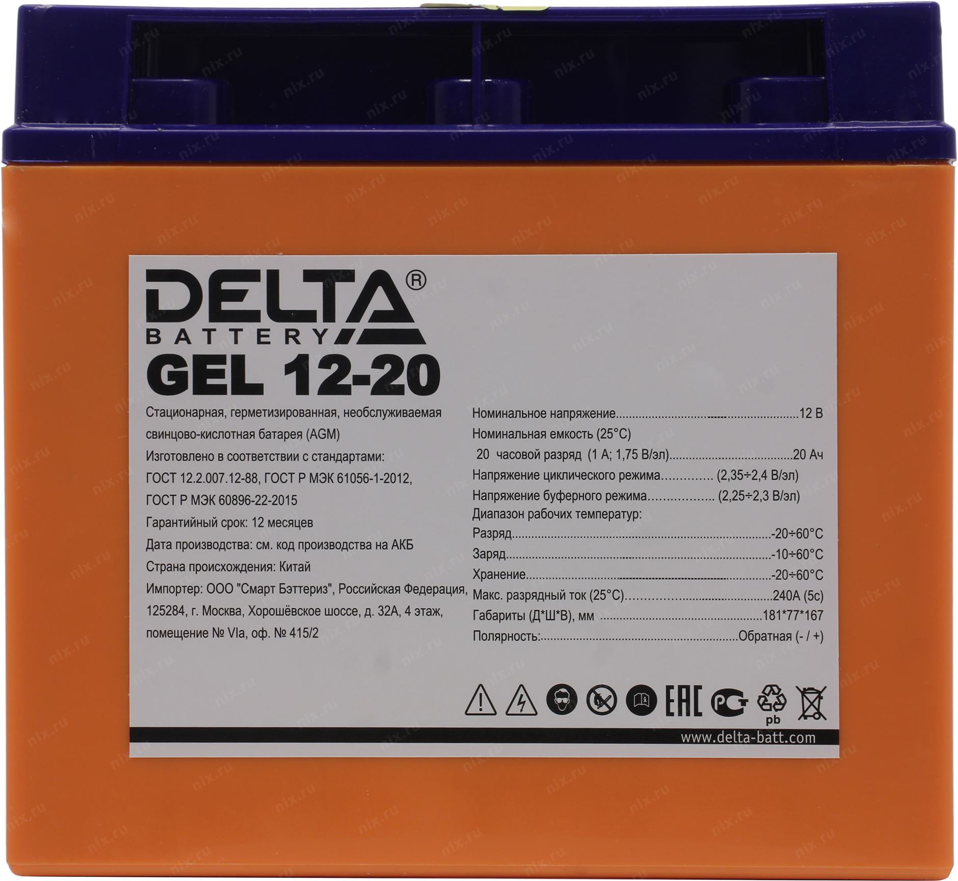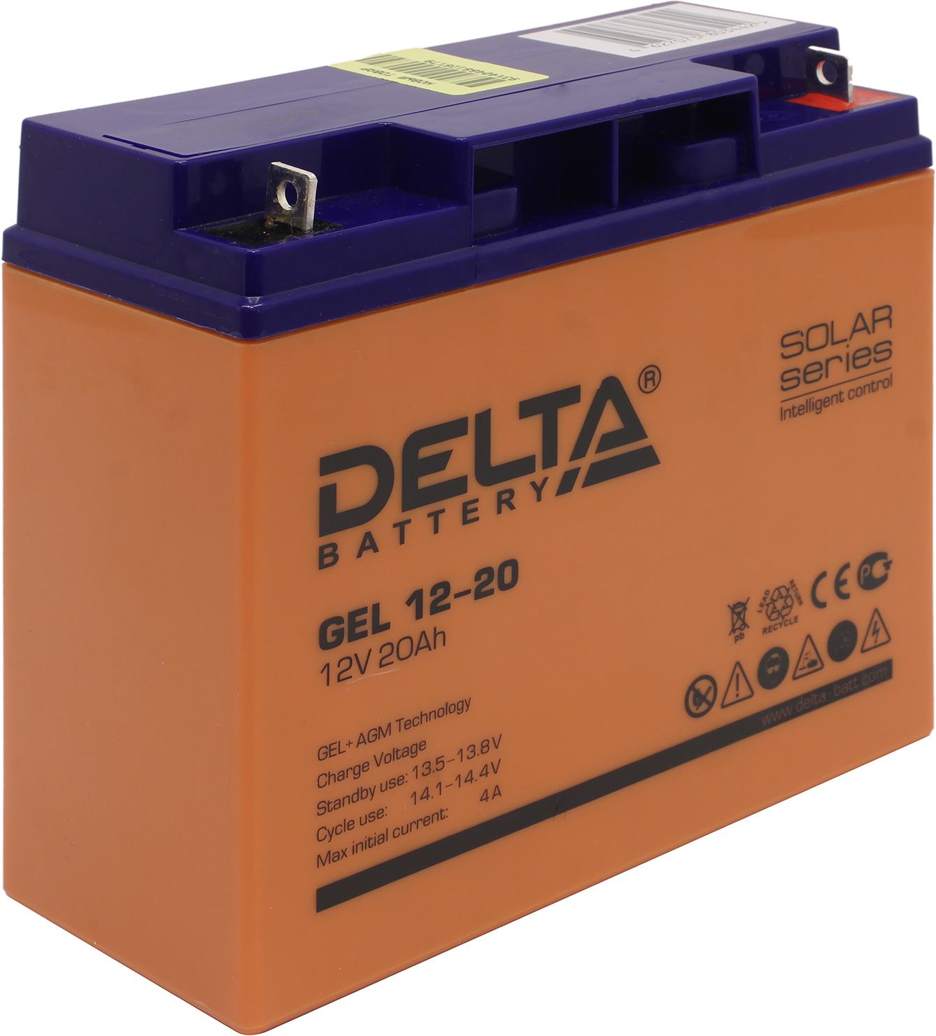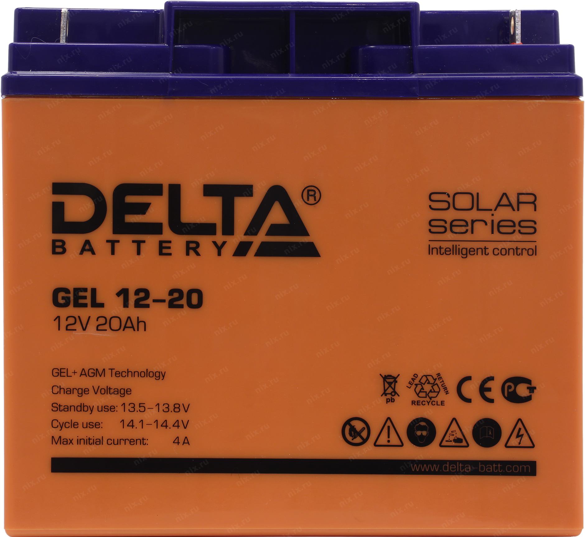 Свинцово-кислотный аккумулятор Delta GEL 12-20 напряжением 12В и емкостью 20Ач изготовлен по технологии AGM+GEL: combined AGM and GEL technology (частичное сгущение электролита). Устойчив к глубоким разрядам. Корпус изготовлен из негорючего ABS пластика. Срок службы аккумулятора достигает 10-12 лет. Аккумулятор предназначен для работы в режиме постоянного подзаряда (буферный режим) или в режиме разряд-заряд (циклический режим). Обладает низким внутренним сопротивлением и саморазрядом. Дополнительно к аккумулятору у нас можно подобрать зарядное устройство для него, батарейный шкаф или стеллаж.