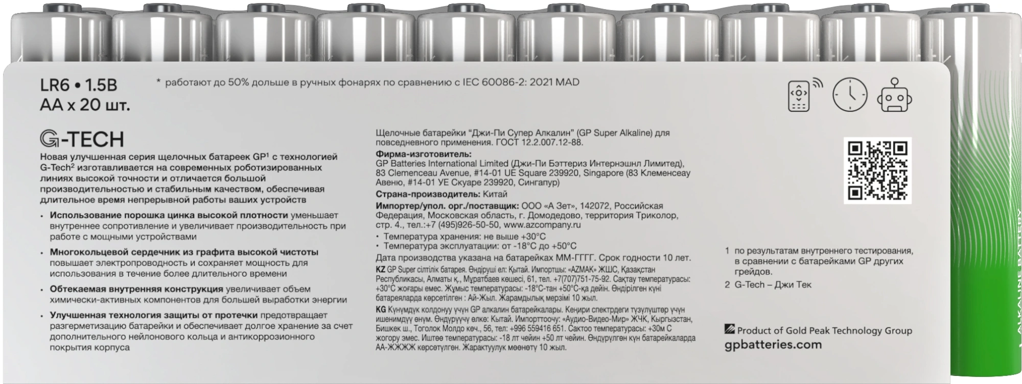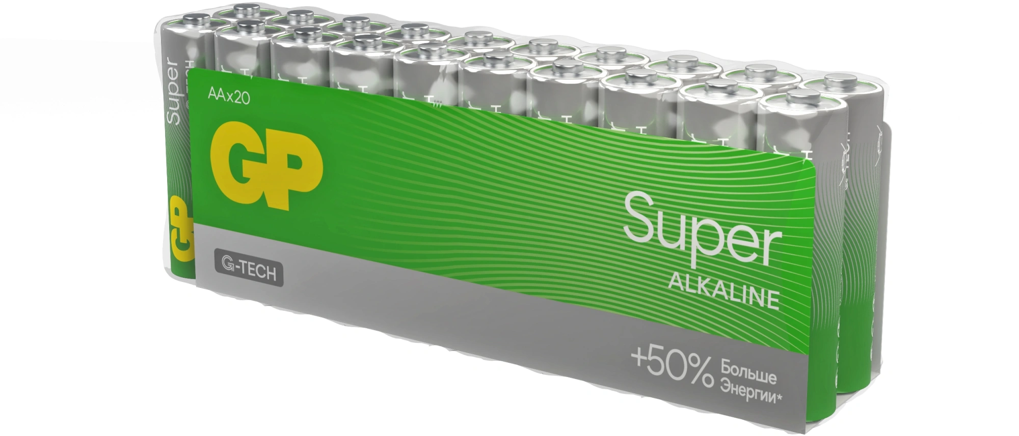 Батарея GP Super Alkaline 15AA21-2CRSWC20 AA (20шт) спайка GP 15AA21-2CRSWC20 240/ 960 (продается кратно 12 шт.)