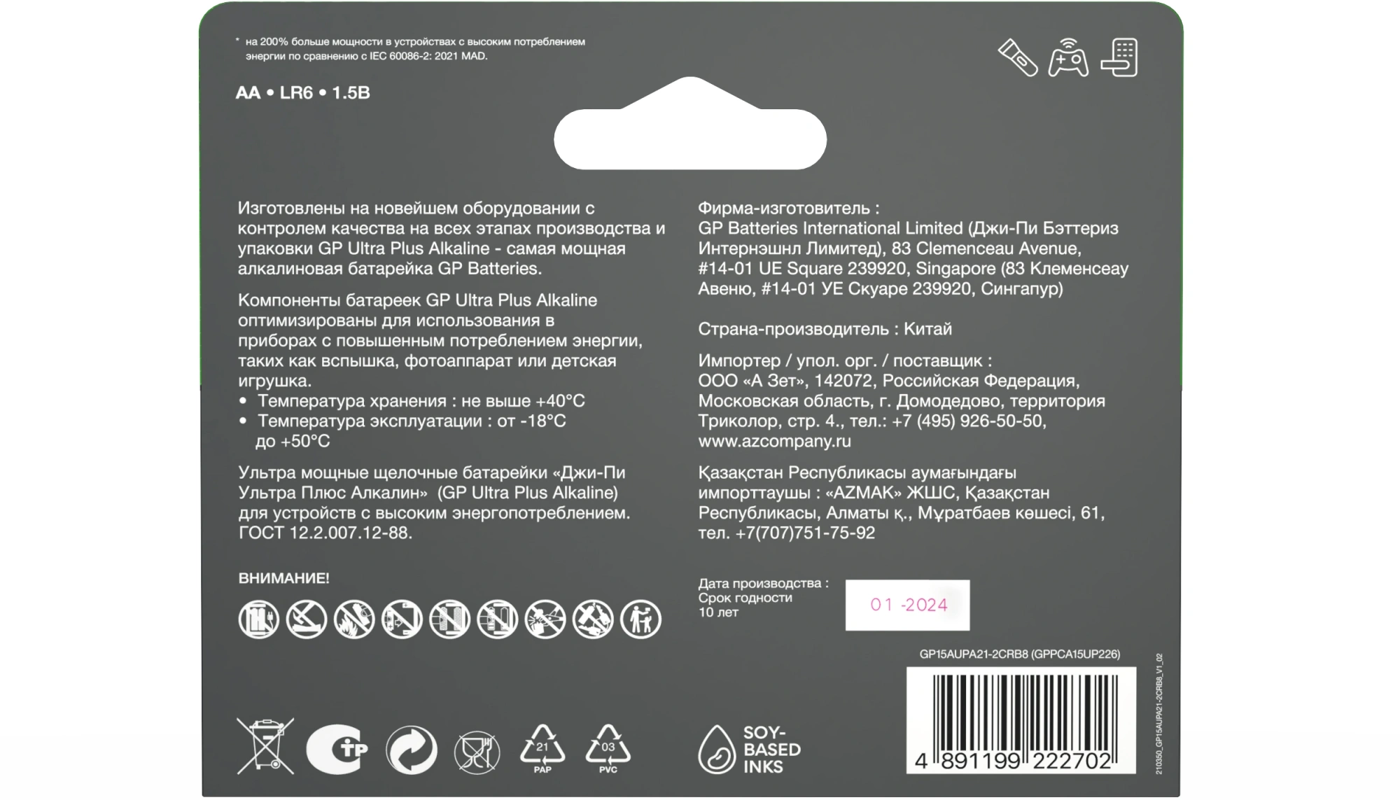 Батарея GP Ultra Plus Alkaline 15AUPA21-2CRB8 AA (8шт) блистер GP 15AUPA21-2CRB8 96/768 (продается кратно 12 шт.)