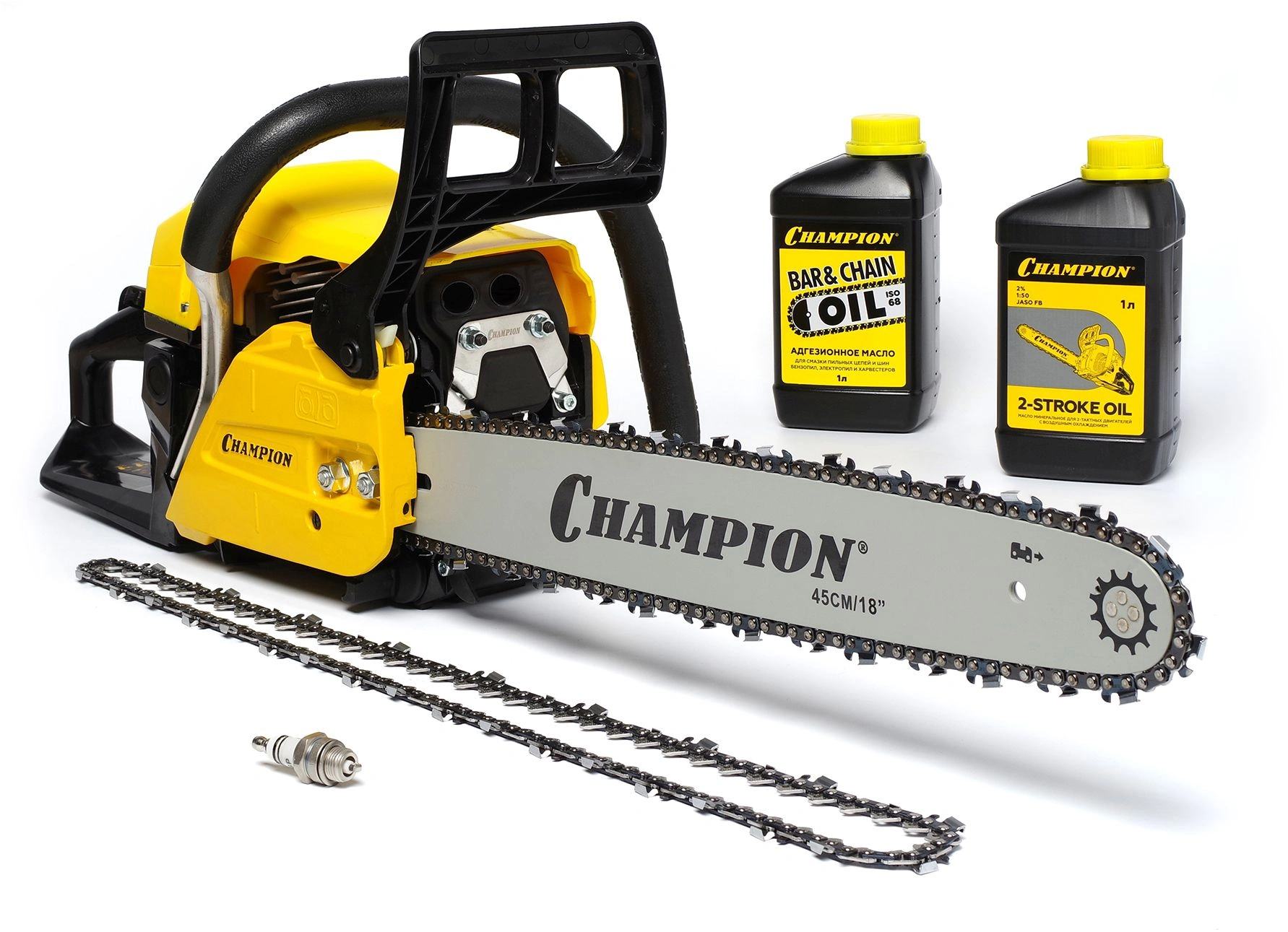 Бензопила;  руководство по эксплуатации;  шина;  цепь пильная;  чехол для шины;  отвертка;  ключ свечной;  ключ Г-образный шестигранный 4мм;  ключ Г-образный шестигранный 5мм;  емкость для приготовления топливной смеси;  упор зубчатый;  винт крепления зубчатого упора 2 шт;  гайка крышки шины 2 шт.