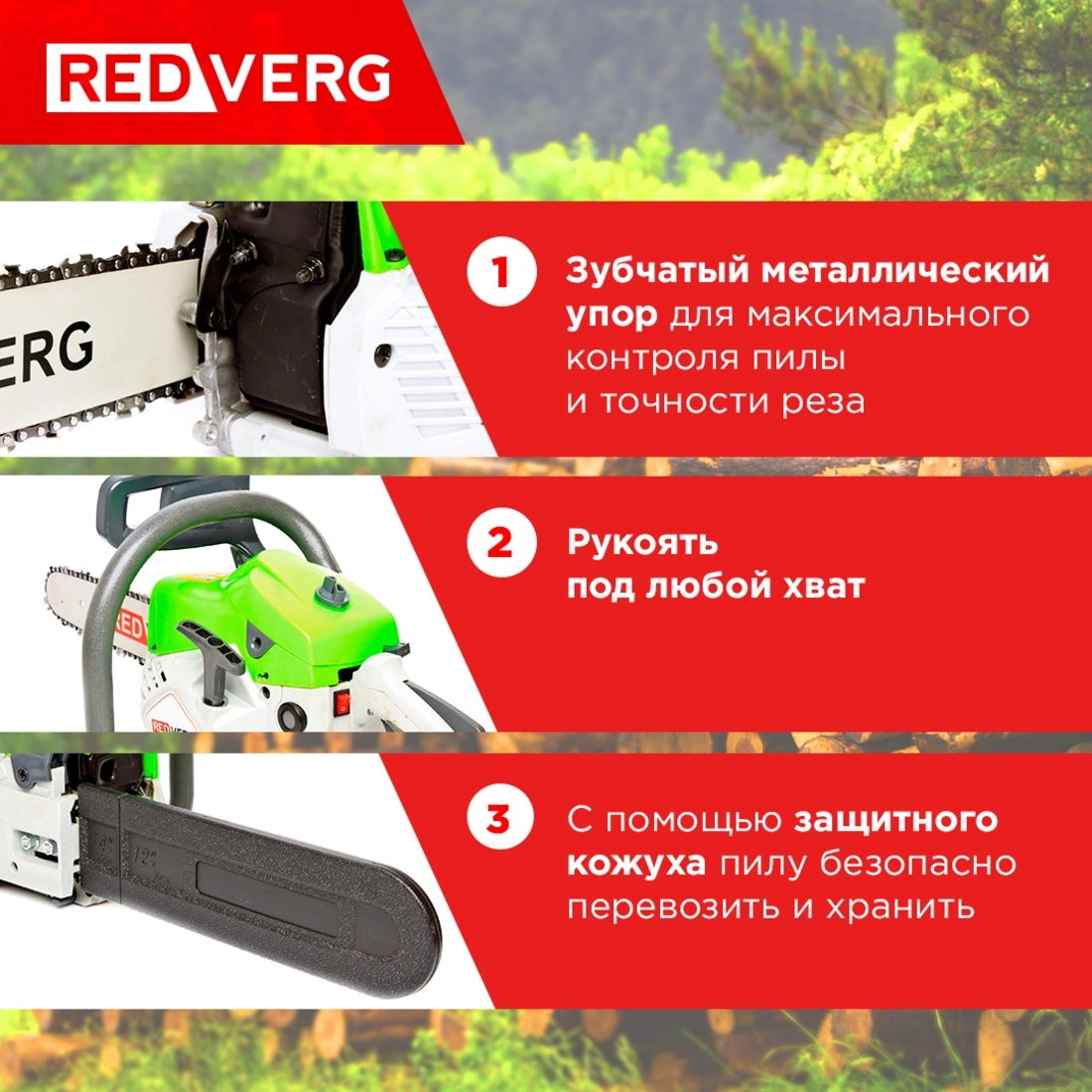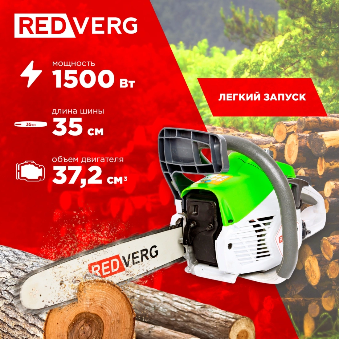 Лёгкая компактная бензопила, мощностью 1, 5 кВт, с шиной длиной 35см, позволит выполнять работы по спиливанию деревьев в саду и на загородном участке, а также при распиливании и заготовки дров на зиму.