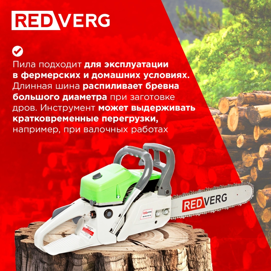 Лёгкая компактная бензопила, мощностью 1, 8 кВт, с шиной длиной 40см, позволит выполнять работы по спиливанию деревьев в саду и на загородном участке, а также при распиливании и заготовки дров на зиму.
