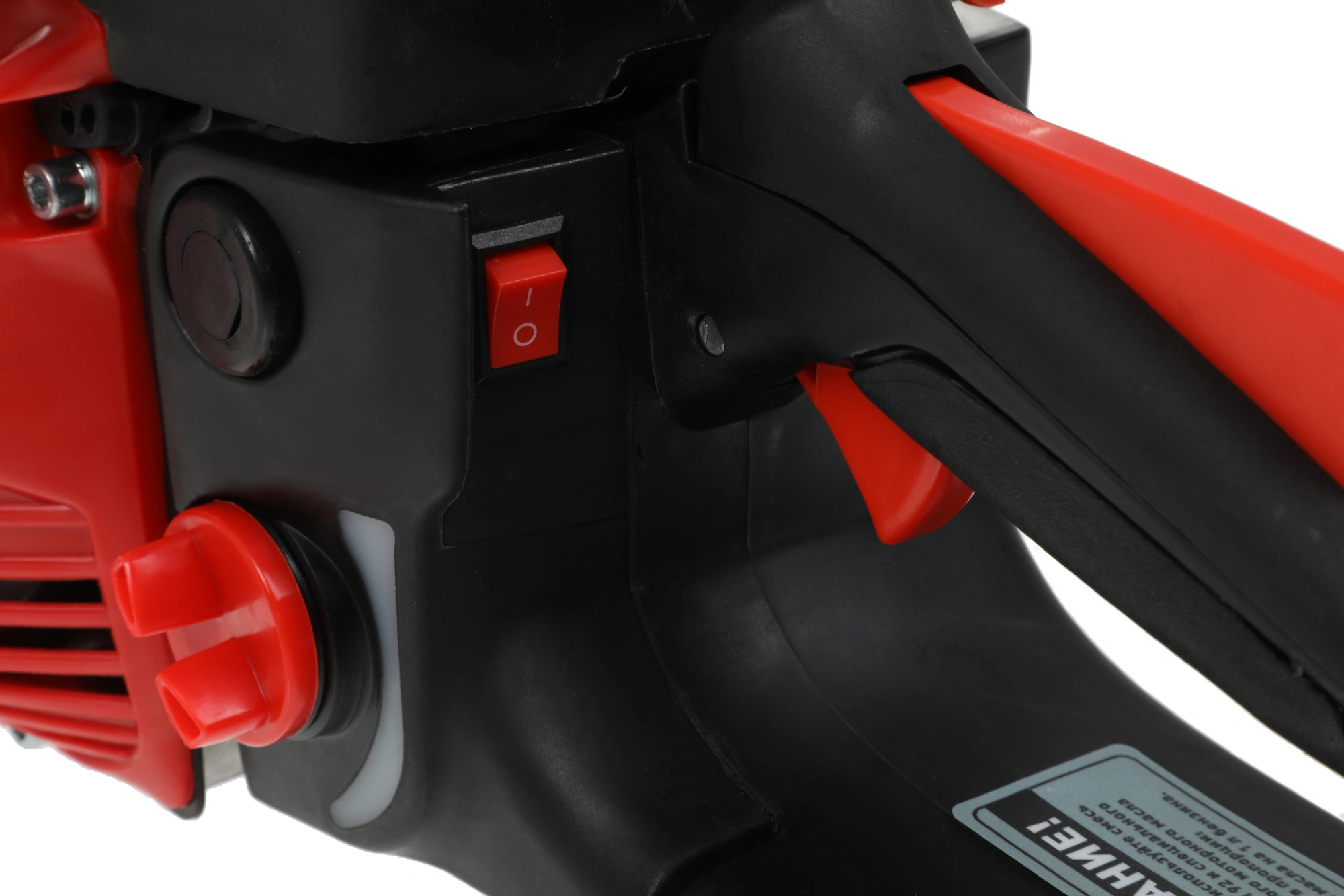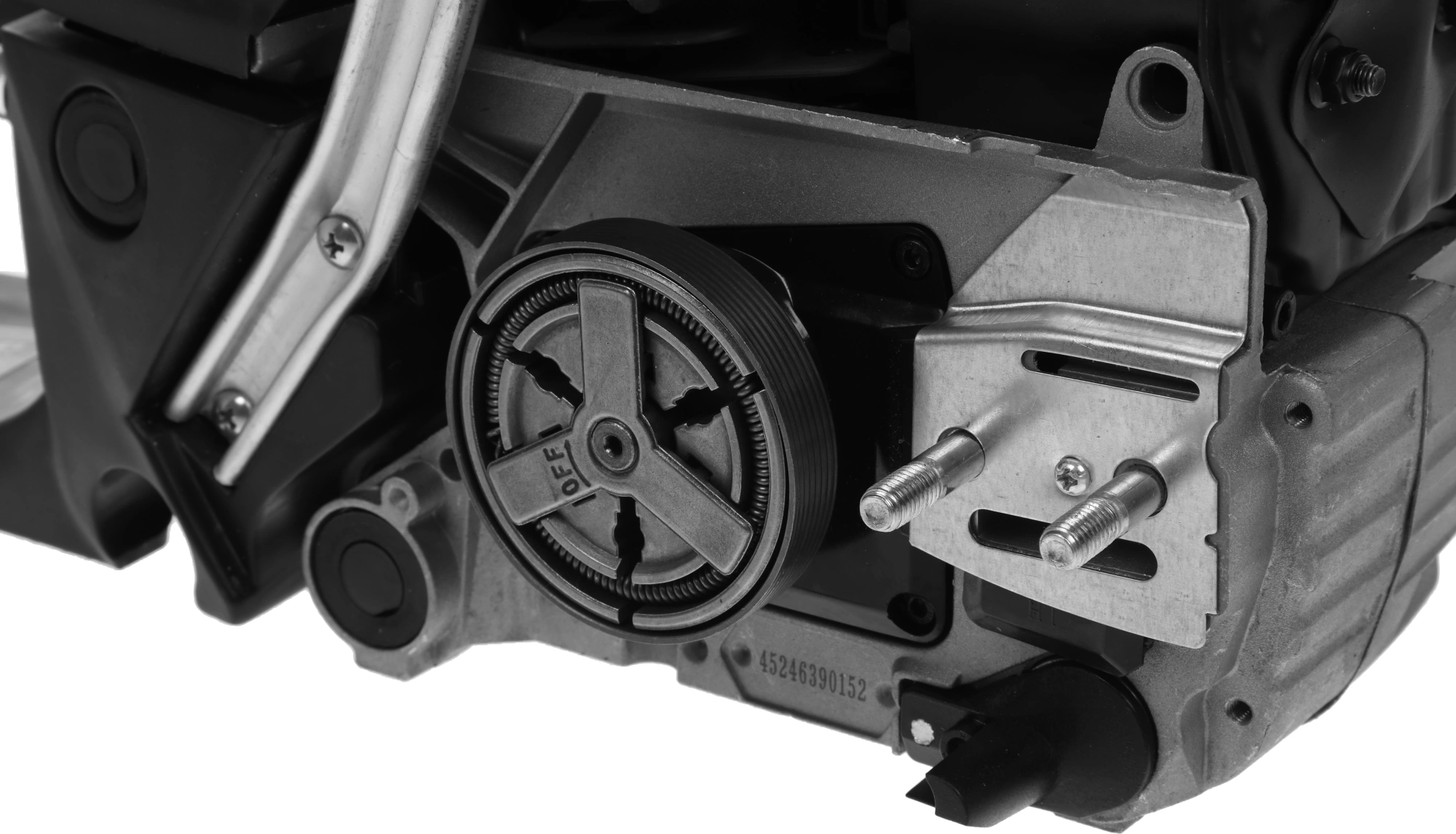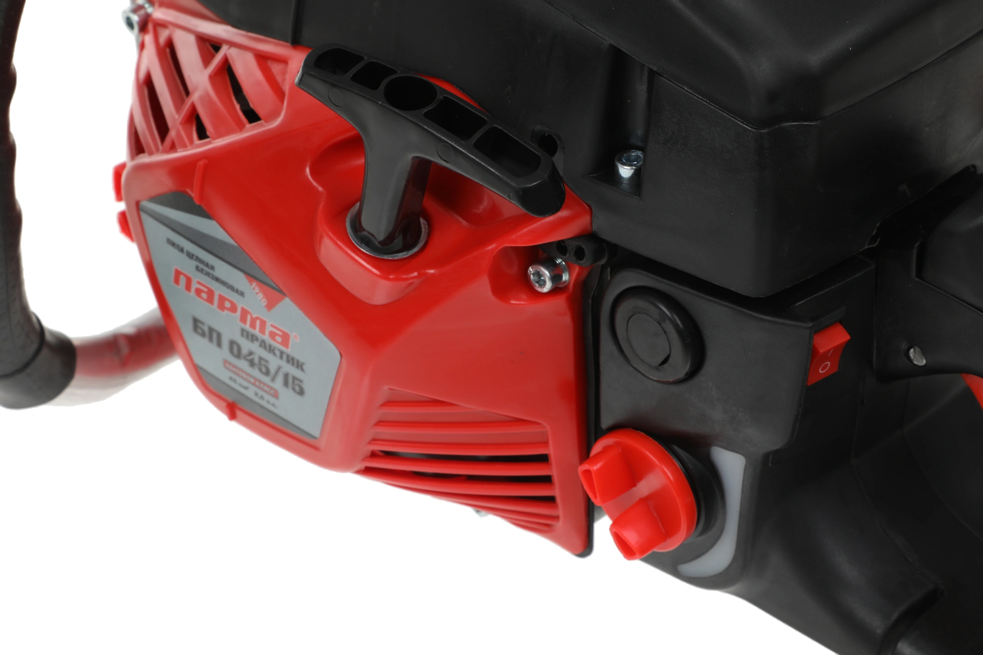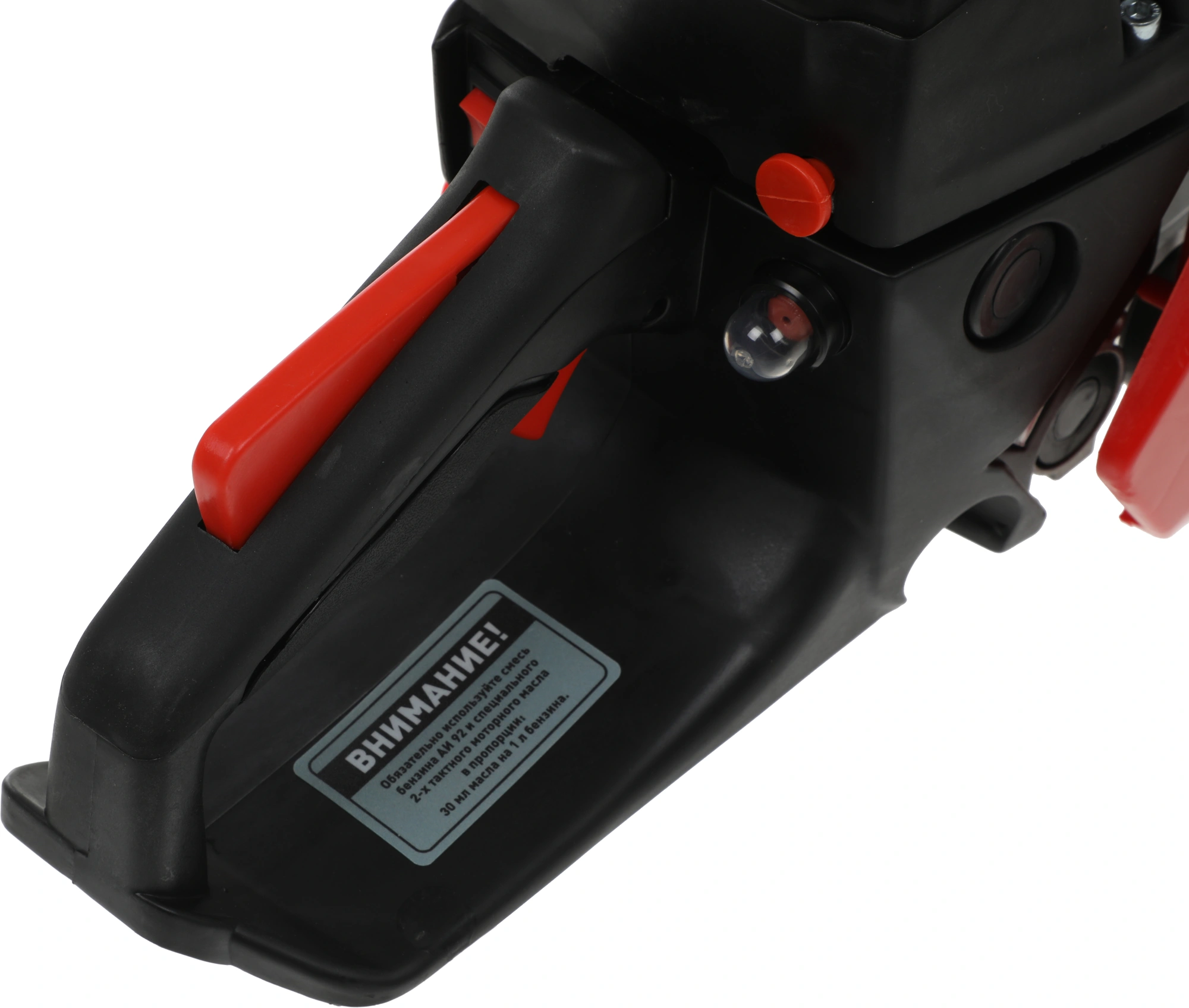 Материал корпуса устойчив к низким температурам. Окошко для контроля количества топлива в бензобаке. Топливная помпа для облегчения запуска двигателя. Многоточечная антивибрационная система. Прочный металлический картер двигателя. Стартер с системой легкого запуска. Регулируемая система смазки цепи.