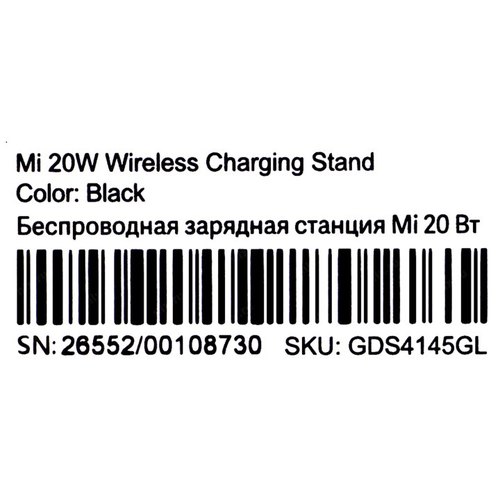 Беспроводное зар./устр. Xiaomi Mi 20W Wireless Charging Stand 20W 2A USB Type-C универсальное черный (GDS4145GL)