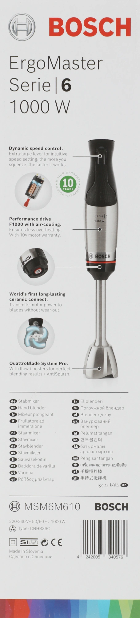 Блендер погружной Bosch MSM6M610 1000Вт нержавеющая сталь/ черный