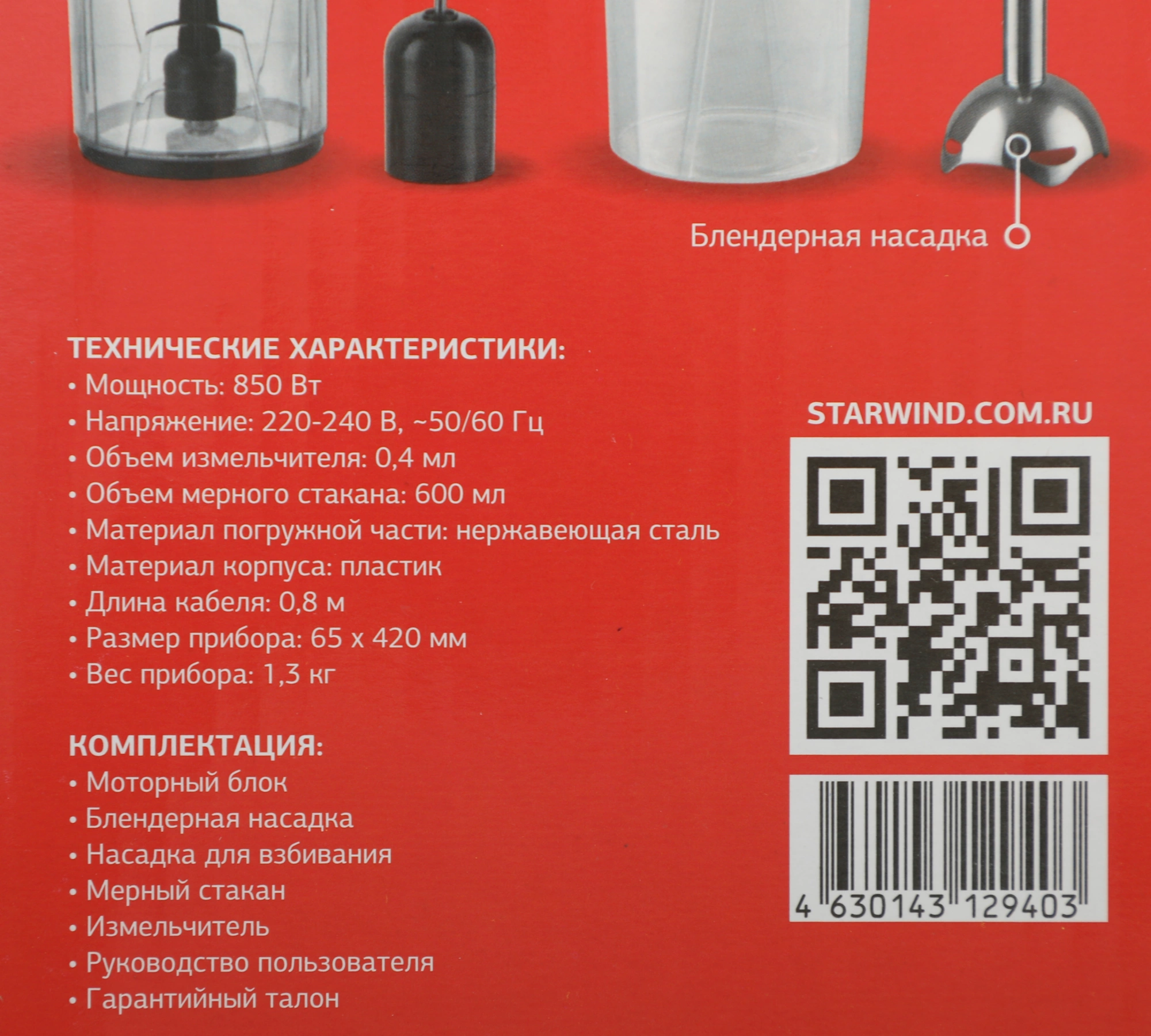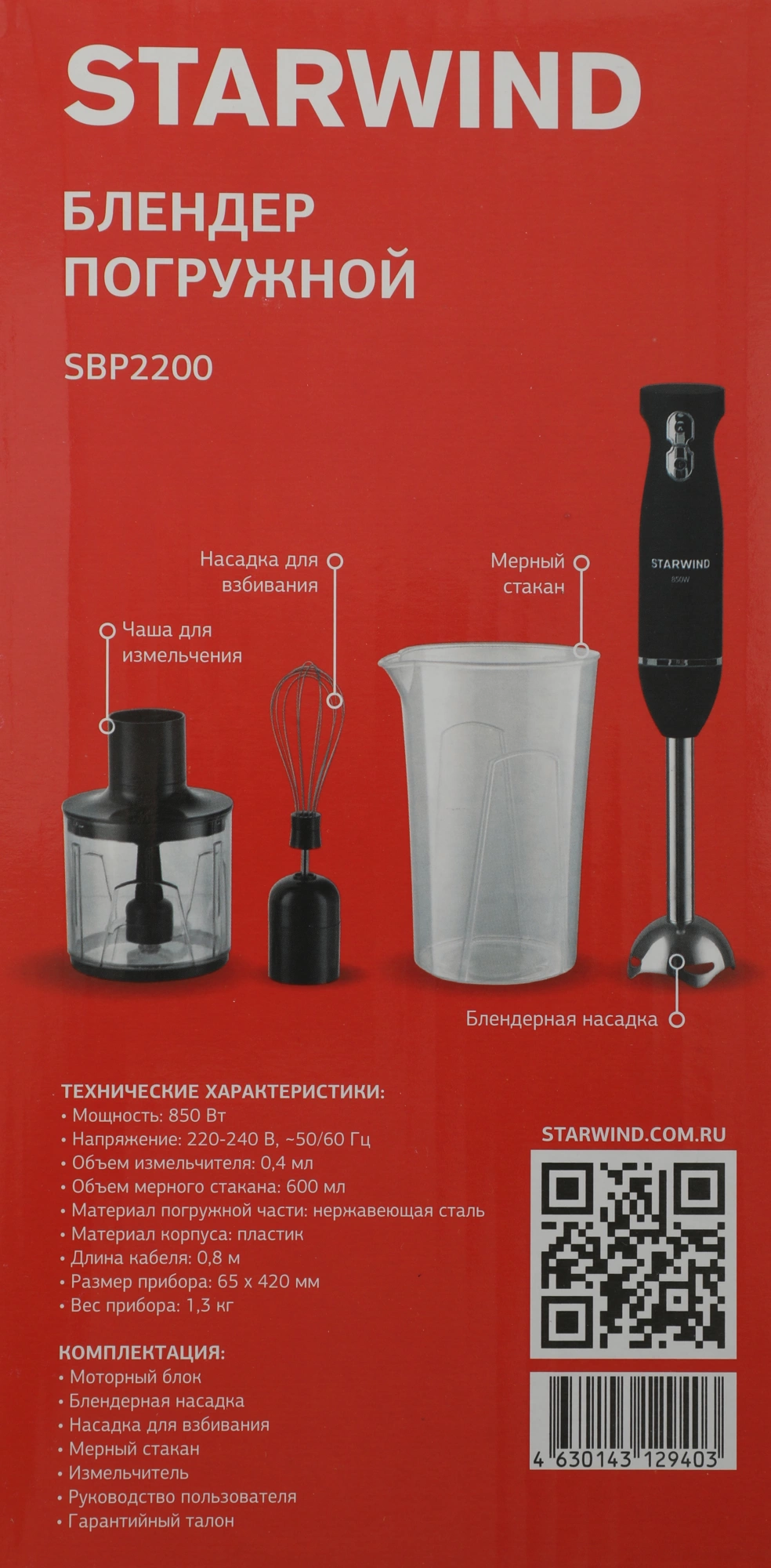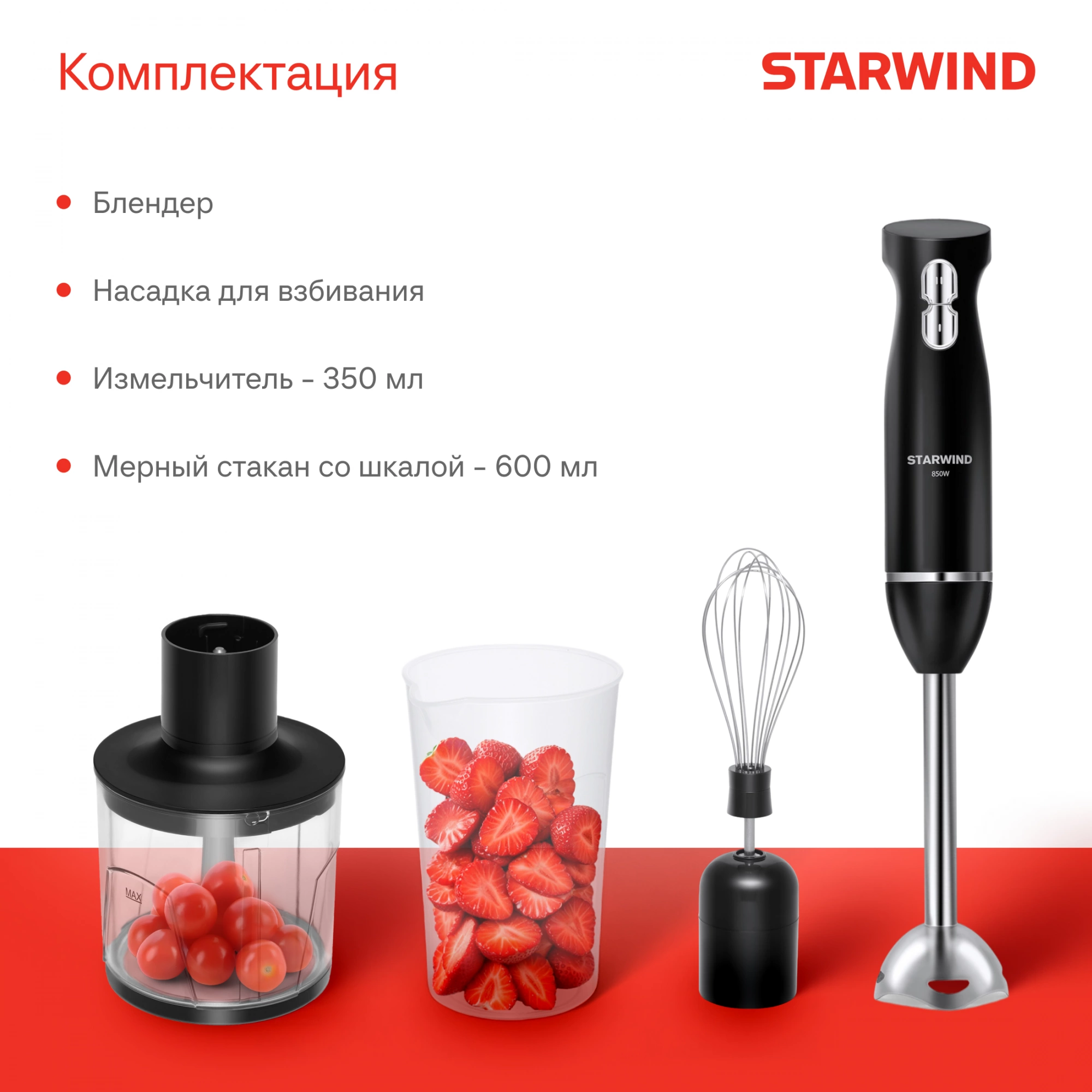 Блендер погружной Starwind SBP2200 850Вт черный/ серебристый
