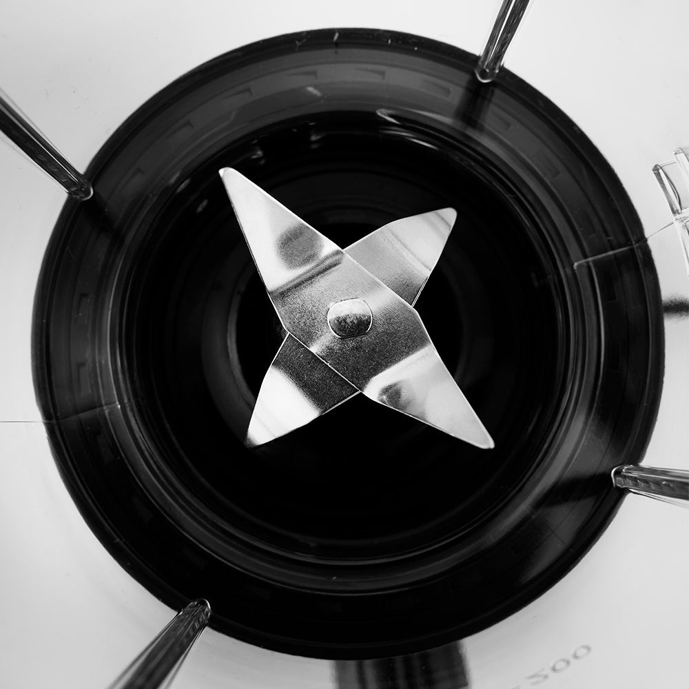 У бутылки имеется флип-крышка, которая предотвращает выливание напитка. 4-лезвийный нож из высококачественной стали отлично смешает различные ингредиенты на 2 скоростных режимах, а также с помощью импульсного режима он измельчит особенно твёрдые продукты. Ёмкость чаши/ бутылки 1л/ 0, 6л/ 0, 4л/ 0, 05л