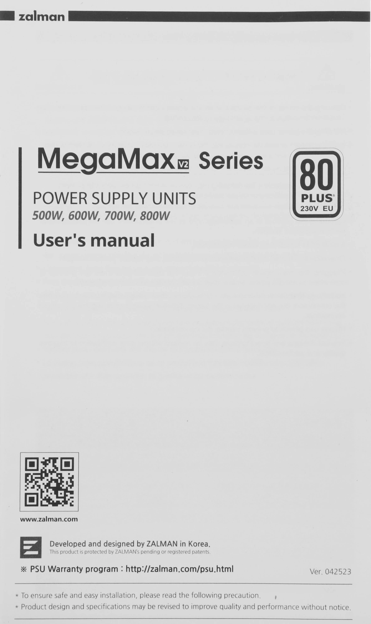 Блок питания ATX 600W 80+standart AFPC 12cm Fan 6xSATA ZM600-TXIIv2 ZALMAN
