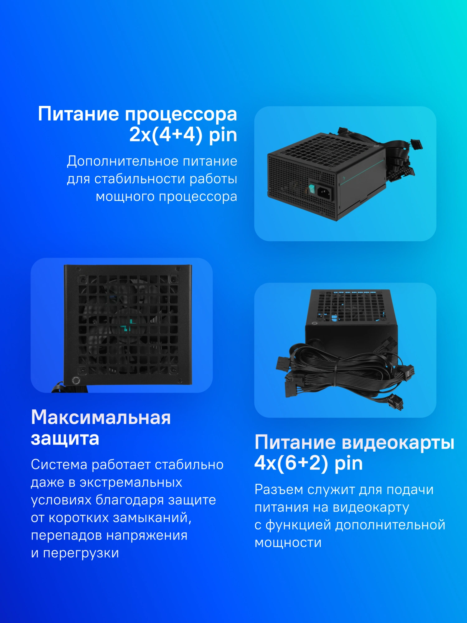 Блок питания Deepcool < R-PF600D-HA0B- (WD) EU> 600W ATX (24+2x8+4x6/ 8пин)