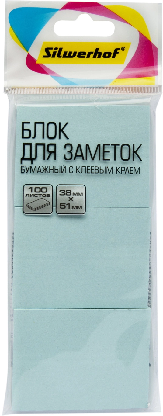 Блок самоклеящийся бумажный Silwerhof 38x51мм 100лист. 75г/ м2 пастель голубой европодвес (упак.:3шт) (продается кратно 12 шт.)