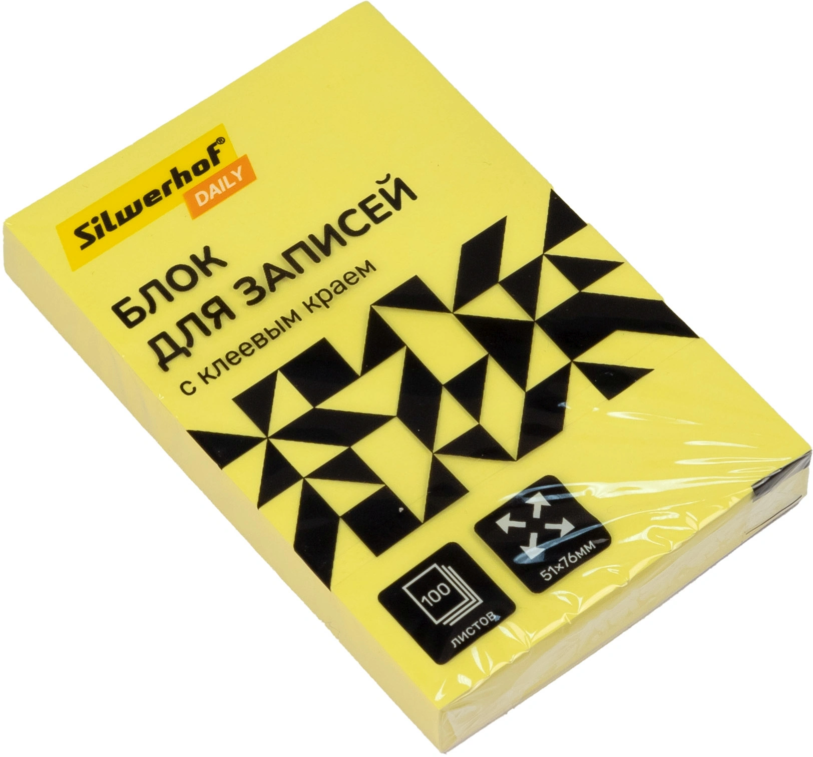 Блок самоклеящийся бумажный Silwerhof Daily 51x76мм 100лист. 75г/ м2 неон желтый (продается кратно 12 шт.)