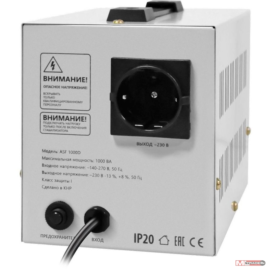 Автоматический стабилизатор напряжения в полностью металлическом корпусе, со встроенным сетевым фильтром, защитой от перегрузки и собственной защитой автотрансформатора от перегрева. Регулируемое время задержки включения.