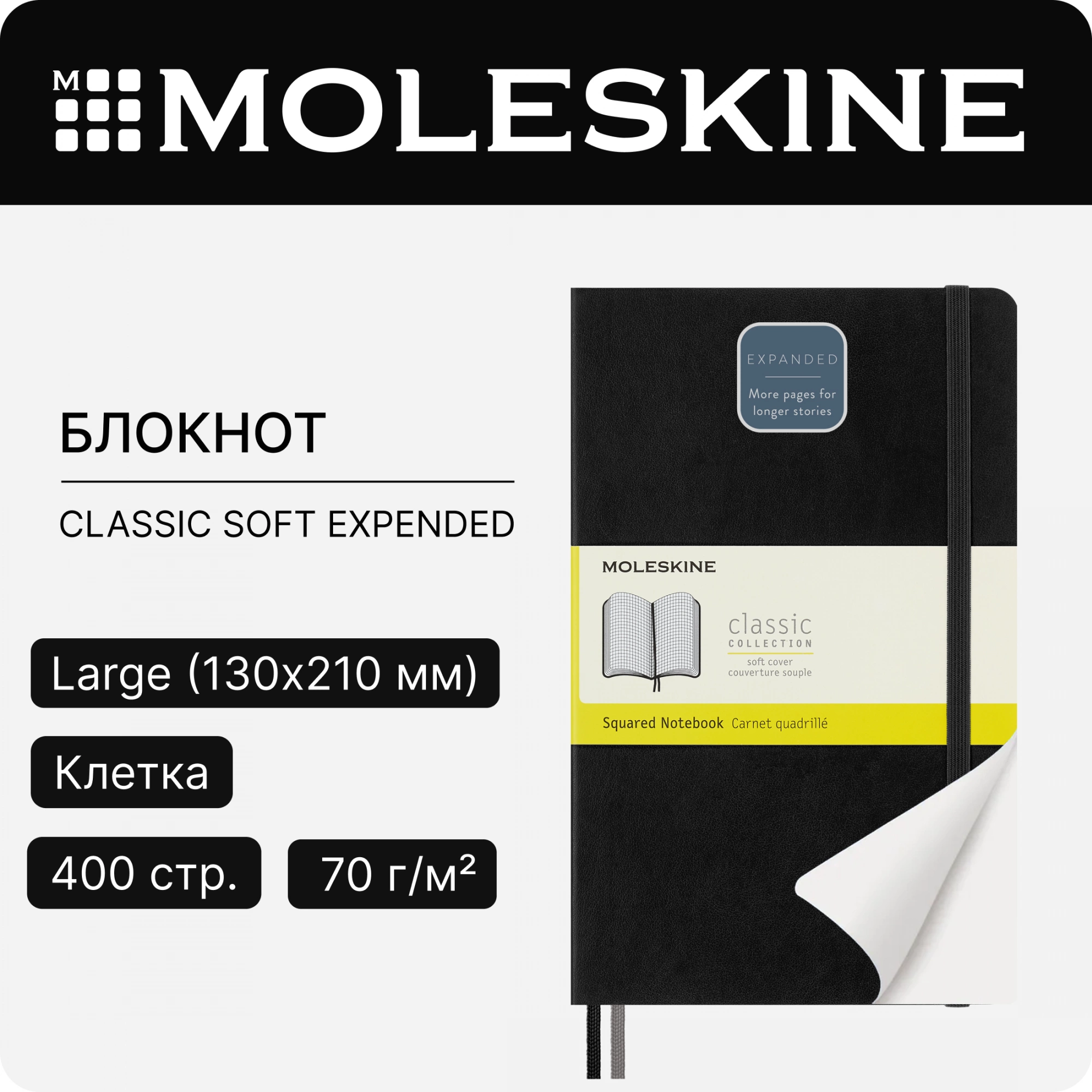 Блокнот Moleskine CLASSIC SOFT EXPENDED QP617EXP Large 130х210мм 400стр. клетка мягкая обложка черный
