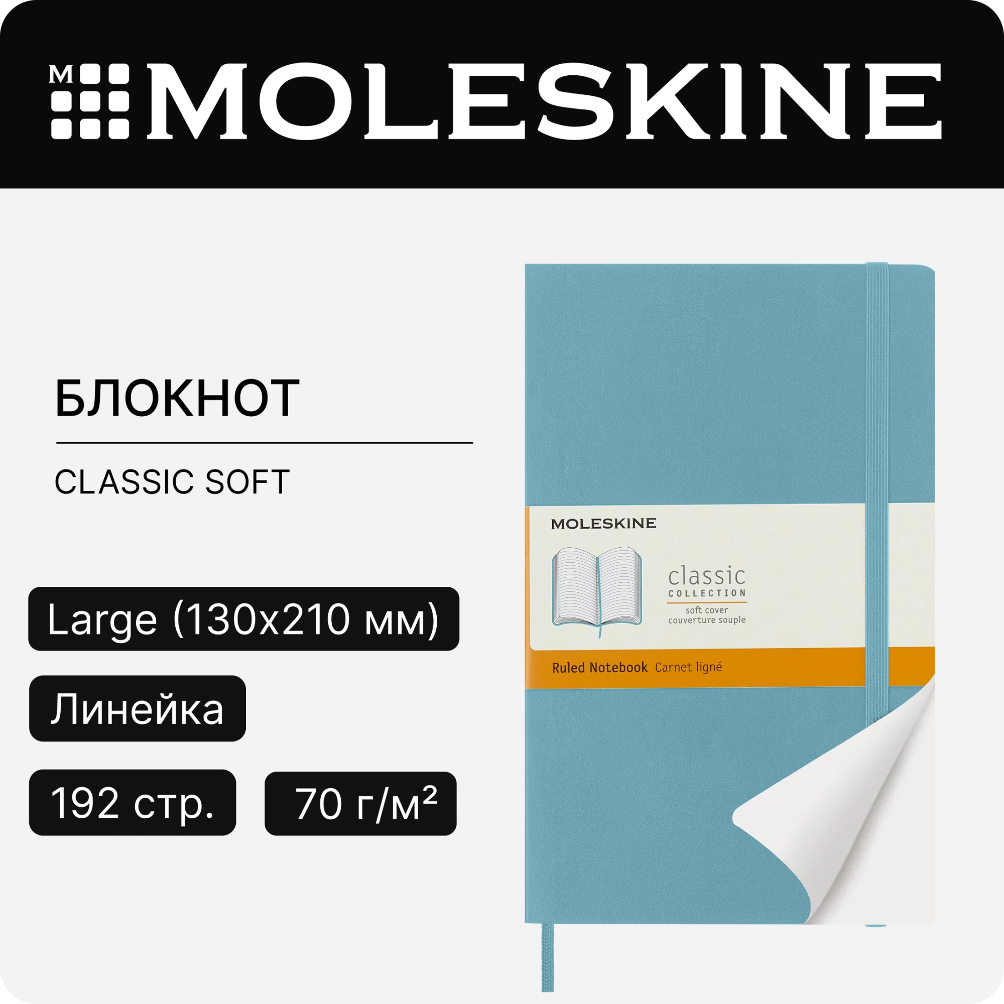 Блокнот Moleskine CLASSIC SOFT QP616B35 Large 130х210мм 192стр. линейка мягкая обложка голубой