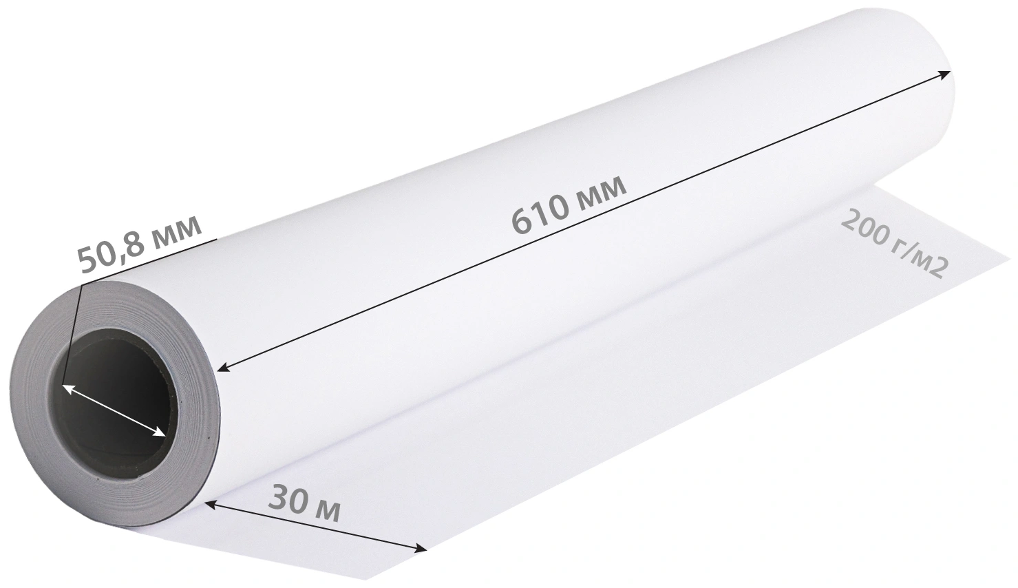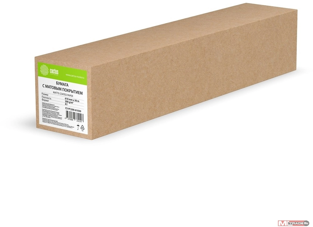 Бумага Cactus CS-PC200-61030 24"(A1) 610мм-30м/200г/м2/белый матовое универсальная (с покрытием) втулка:50.8мм (2")