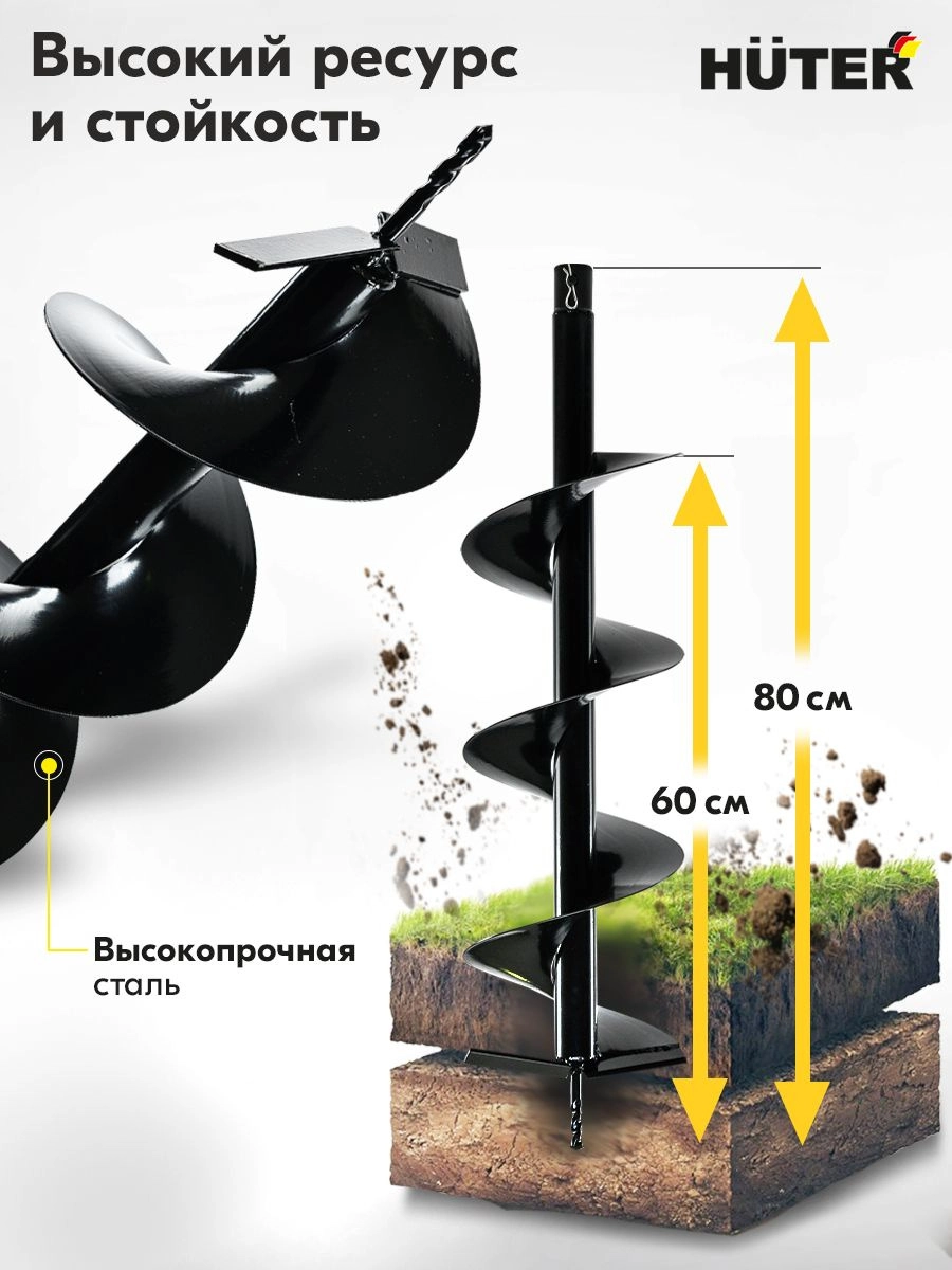 Бур (шнек) HUTER AG-200 диаметром 200 мм, для мотобура GGD-52 и GGD-62