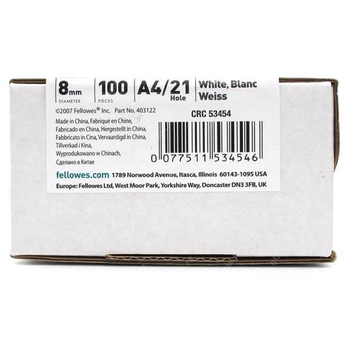 Расходные материалы Fellowes Пружина пластиковая FS(CRC)-53454 (8 мм, белый, 100 шт.) [FS-53454]