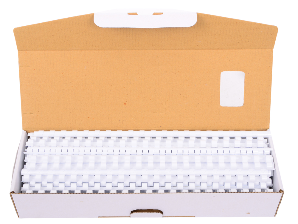 Белые пластиковые пружины для переплета; диаметр 8 мм, шаг 14.28 мм